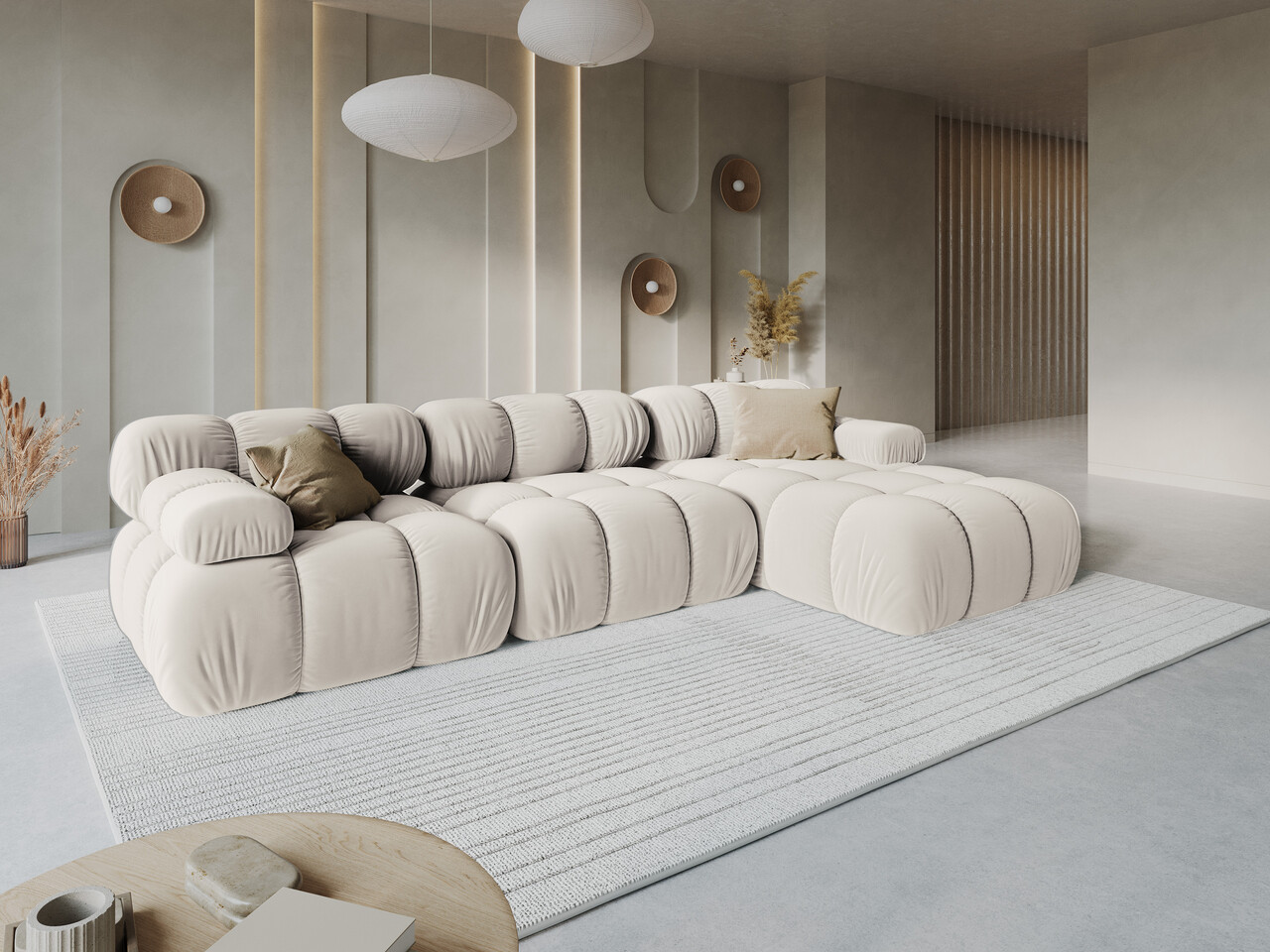 Coltar modular dreapta 4 locuri, Bellis-51, Micadoni Home, 282x155x70 cm, catifea, bej inchis