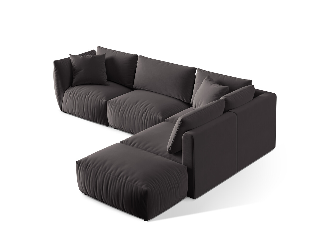Coltar modular dreapta 4 locuri, Chris-184, Micadoni Home, 295x290x80 cm, catifea, gri inchis