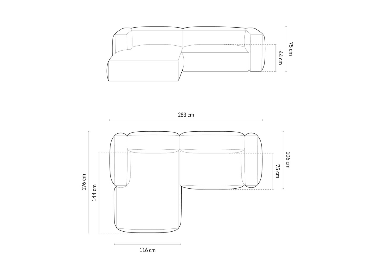 Coltar modular stanga 2 locuri, Martina-212, Micadoni Home, 283x176x75 cm, velur, maro ghinda