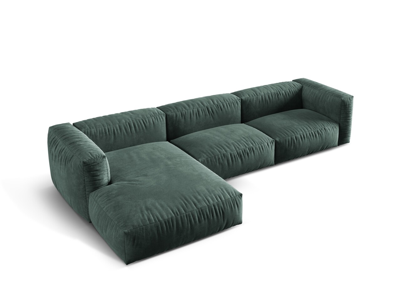 Coltar modular stanga 3 locuri, Martina-120, Micadoni Home, 332x176x75 cm, catifea, petrol