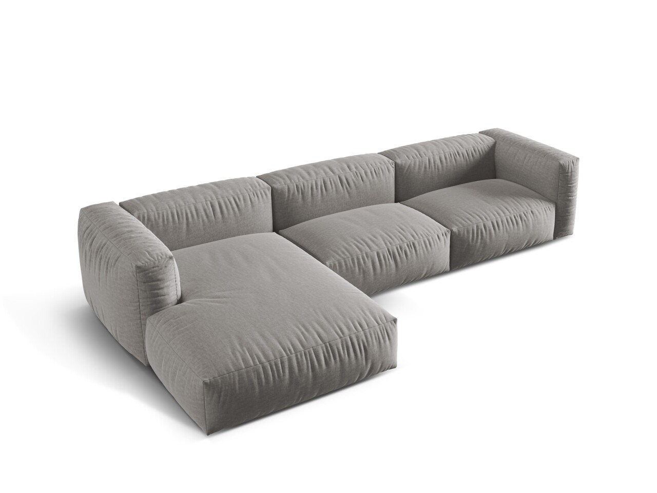 Coltar modular stanga 3 locuri, Martina-169, Micadoni Home, 332x176x75 cm, tesatura structurata catifelata, gri deschis