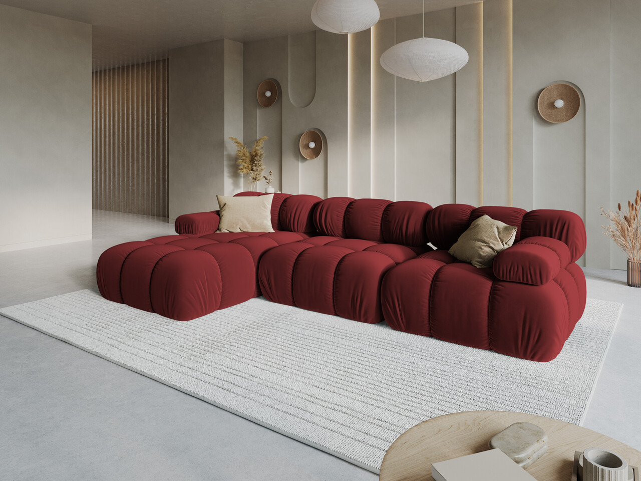 Coltar modular stanga 4 locuri, Bellis, Micadoni Home, BL, 282x155x70 cm, catifea, rosu inchis