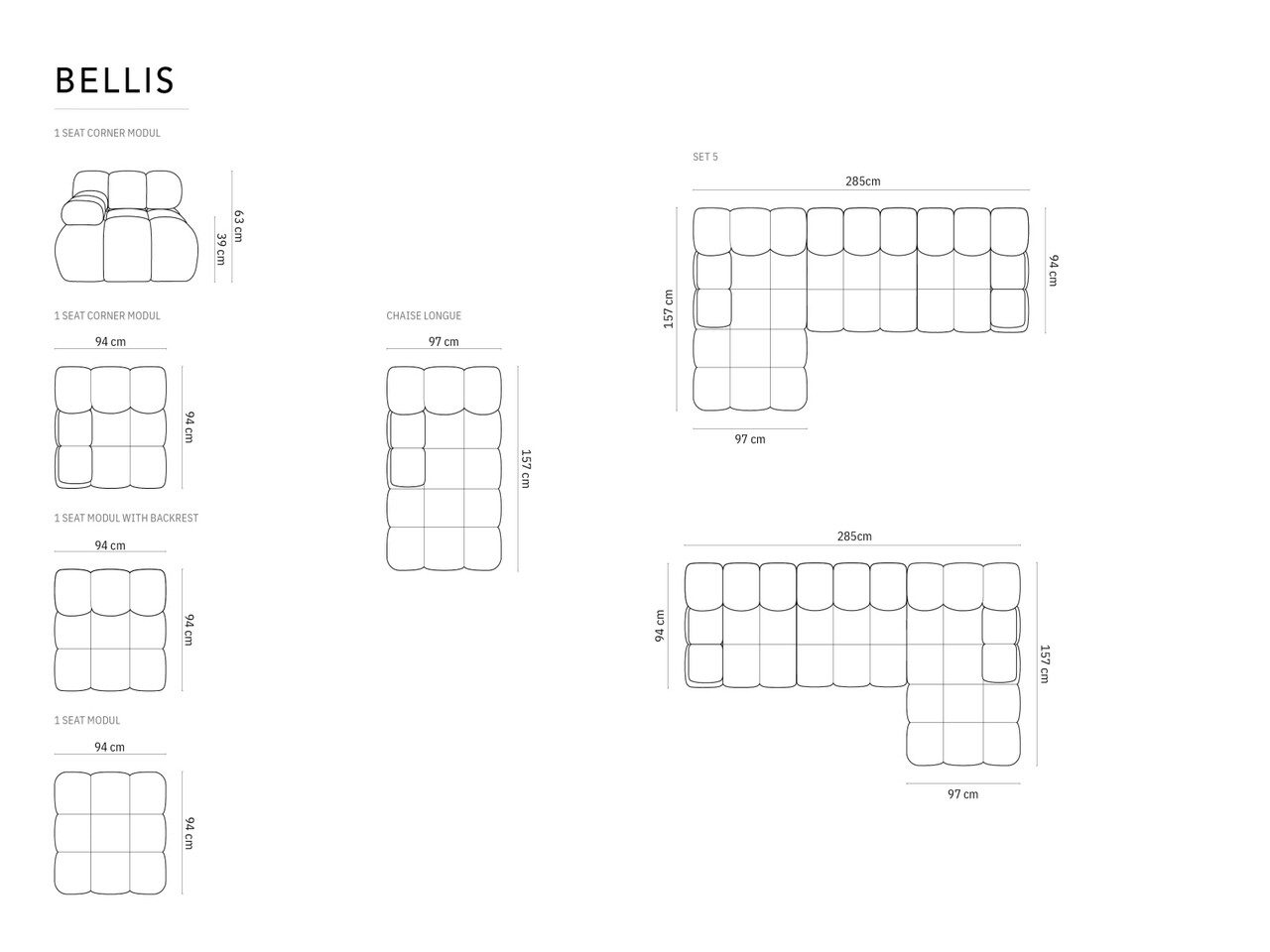 Dimensiunile prezentate se refera la configurarea canapelei de colt. Nu ezitati sa reconfigurati dispunerea modulelor prezentate in imagine in functie de preferintele dvs. Combinati-le, separati-le si deplasati-le pentru a le armoniza cu estetica spatiului dvs. de locuit. Datorita suprafetei sale caracteristice, tesatura de catifea poate avea un aspect diferit in functie de unghiul de lumina. Acest efect este caracteristic pentru un astfel de material textil. Atunci cand rearanjati elementele modulare ale canapelei, nuanta materialului de catifea poate crea diferente subtile in aspectul modulelor.