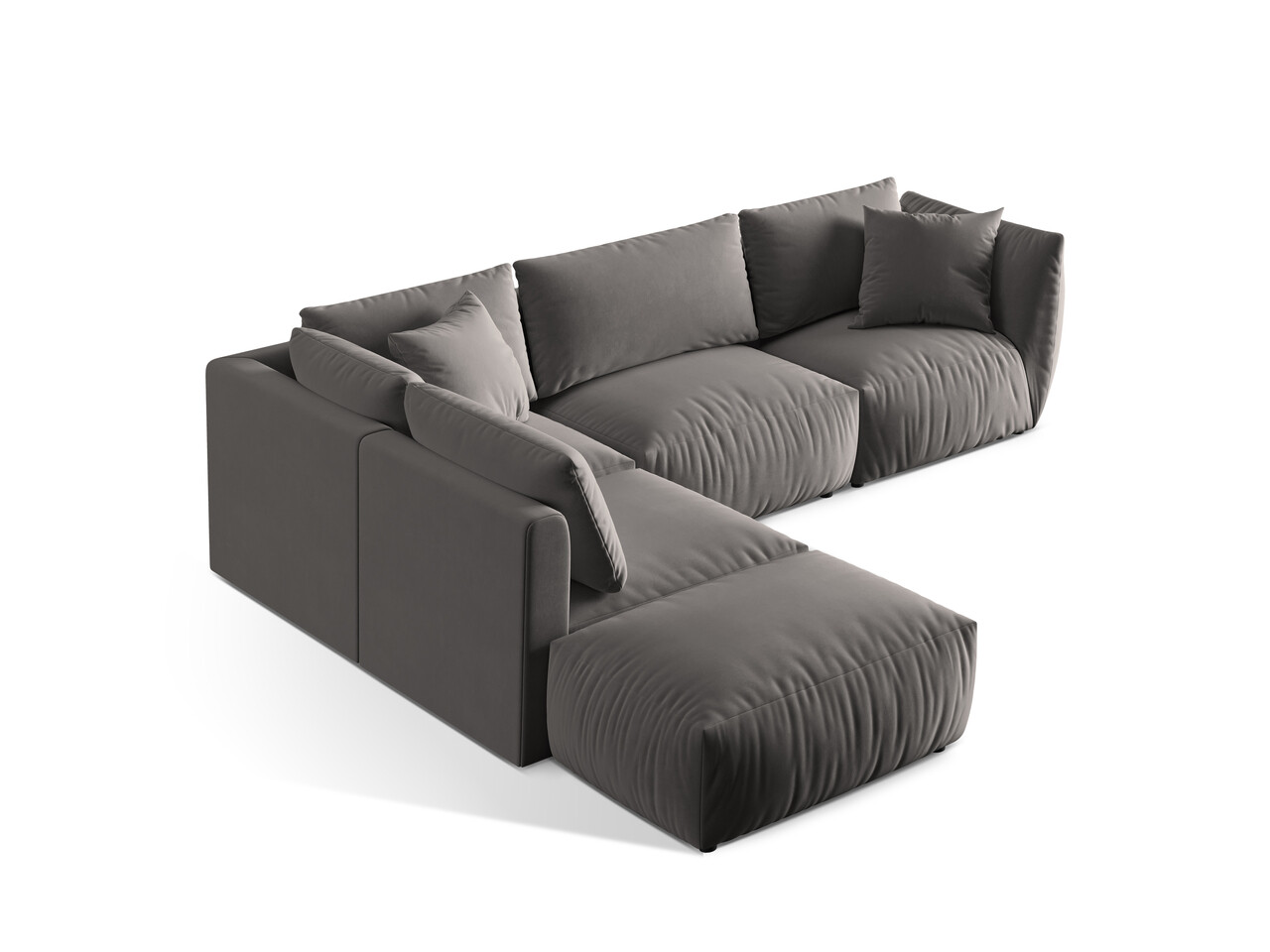 Coltar modular stanga 4 locuri, Chris-184, Micadoni Home, 295x290x80 cm, catifea, gri
