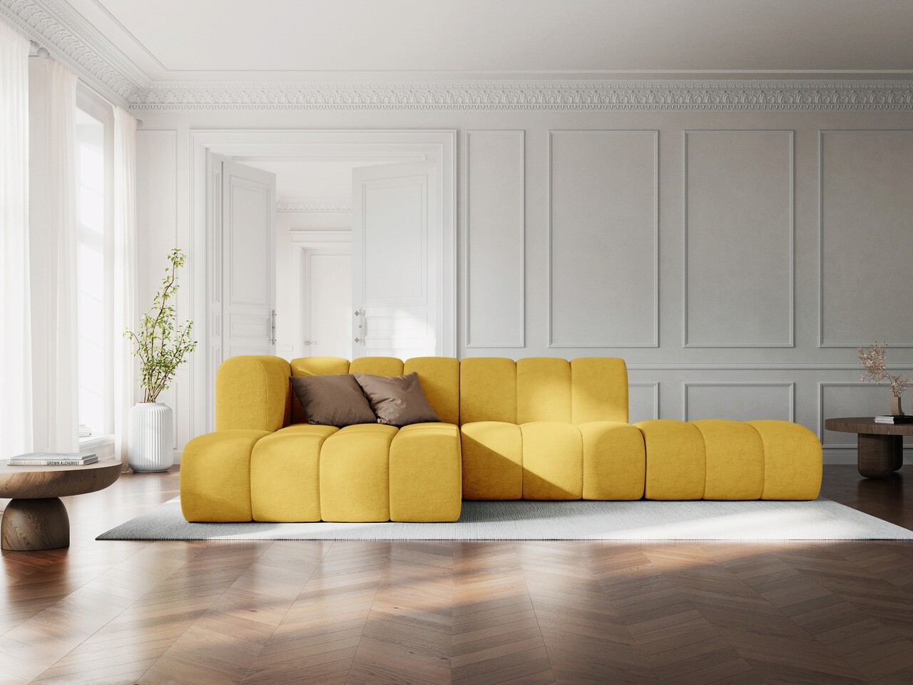 Coltar modular stanga 5 locuri, Lupine, Micadoni Home, BL, fara cotiera, 294x175x70 cm, poliester chenille, galben