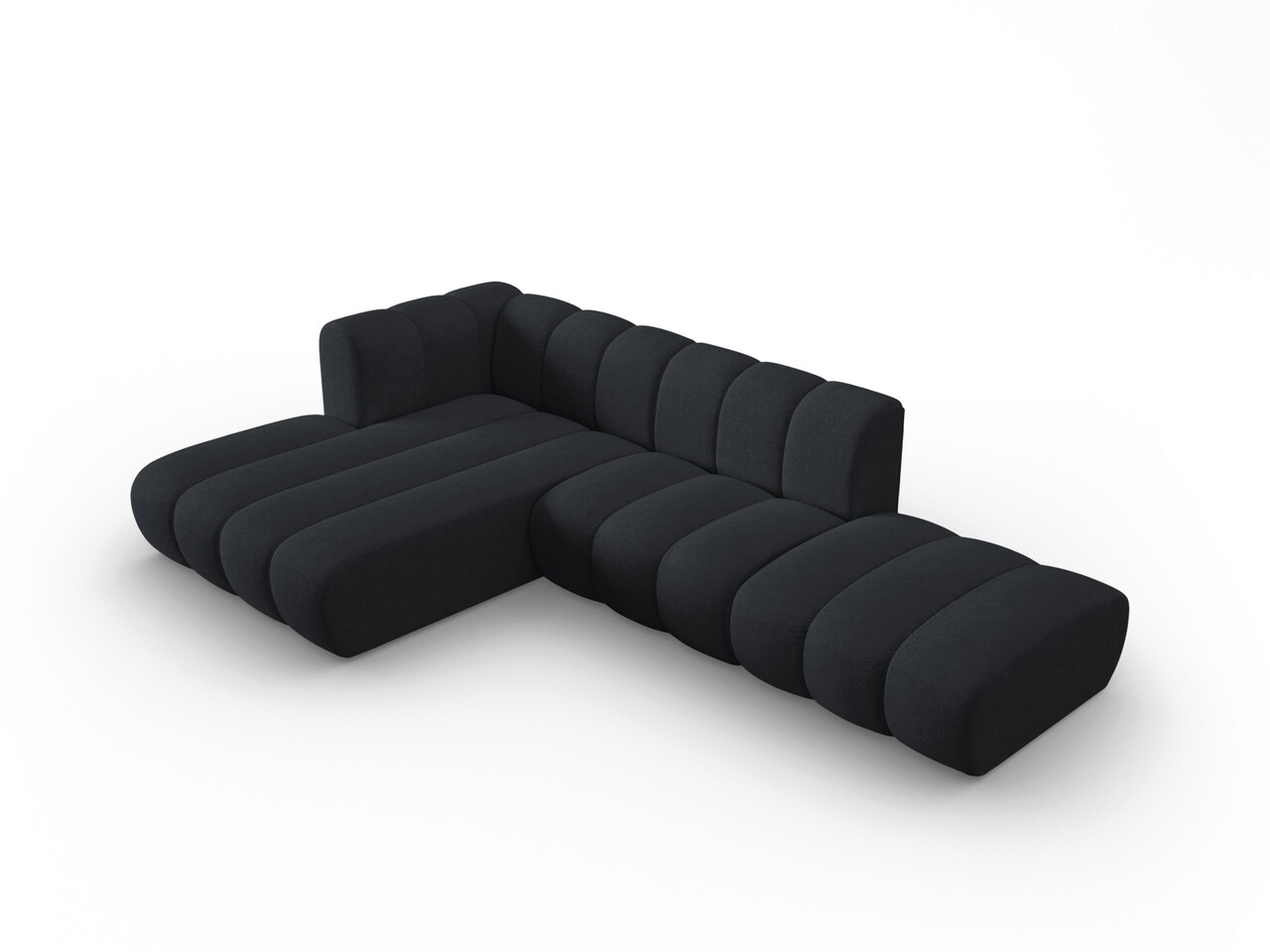 Coltar modular stanga 5 locuri, Lupine, Micadoni Home, BL, fara cotiera, 294x175x70 cm, poliester chenille, negru