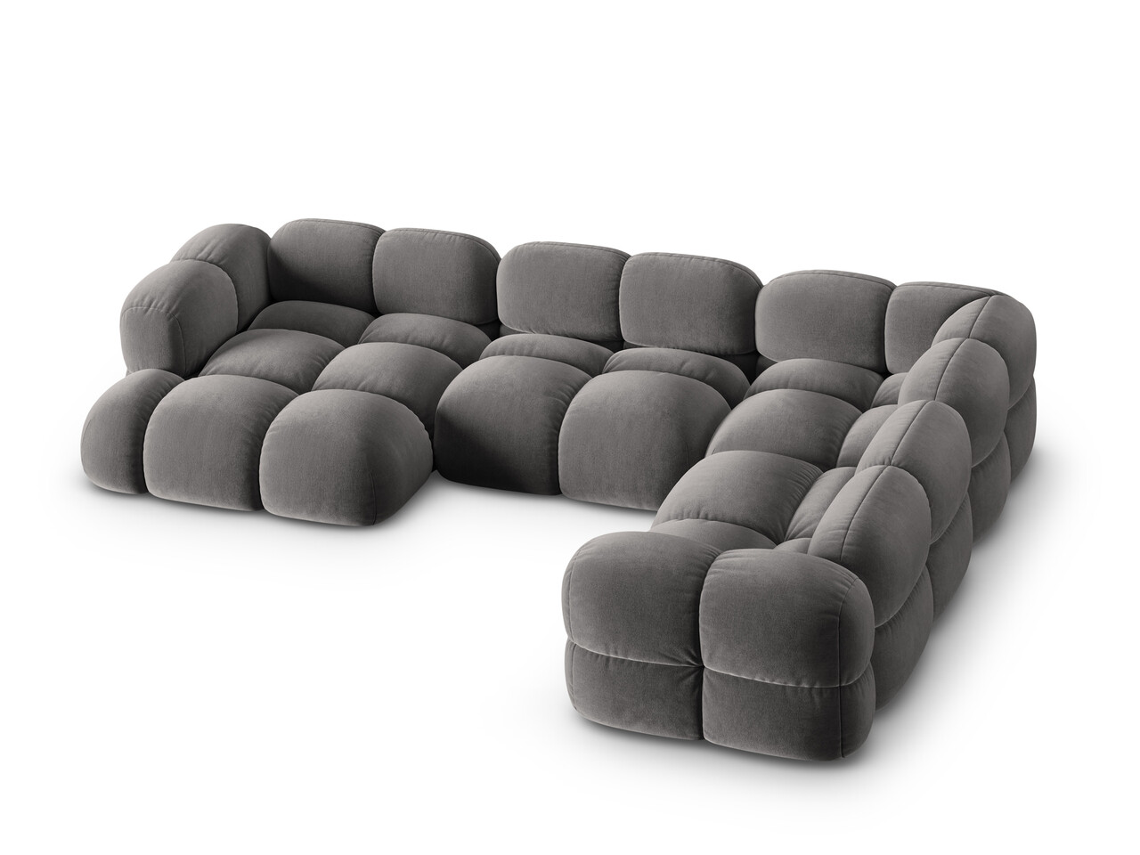 Coltar panoramic dreapta 5 locuri, Loretto, Cosmopolitan Design, 345x250x68 cm, catifea, gri