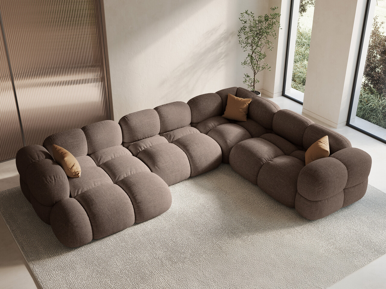 Coltar panoramic dreapta 5 locuri, Loretto, Cosmopolitan Design, 345x250x68 cm, tesatura structurata, cappuccino