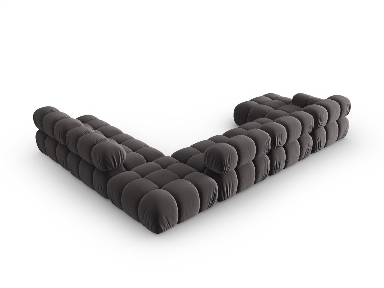 Coltar panoramic dreapta 7 locuri design modular, Bellis, Micadoni Home, BL, 376x282x70 cm, catifea, gri inchis
