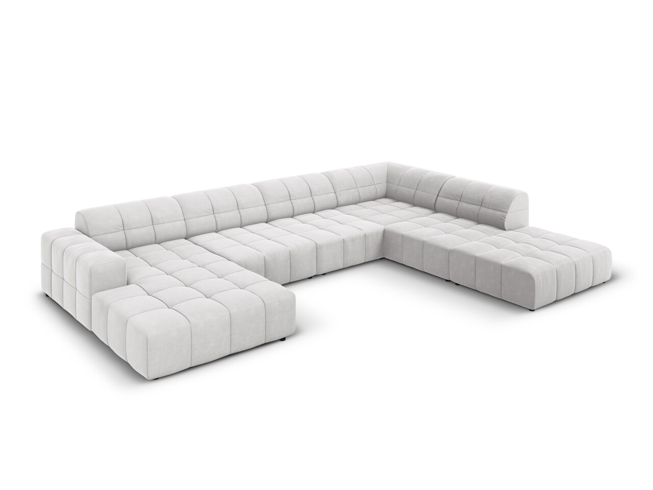 Coltar panoramic dreapta 7 locuri, Jennifer-51, Micadoni Home, 364x262x70 cm, catifea, argintiu