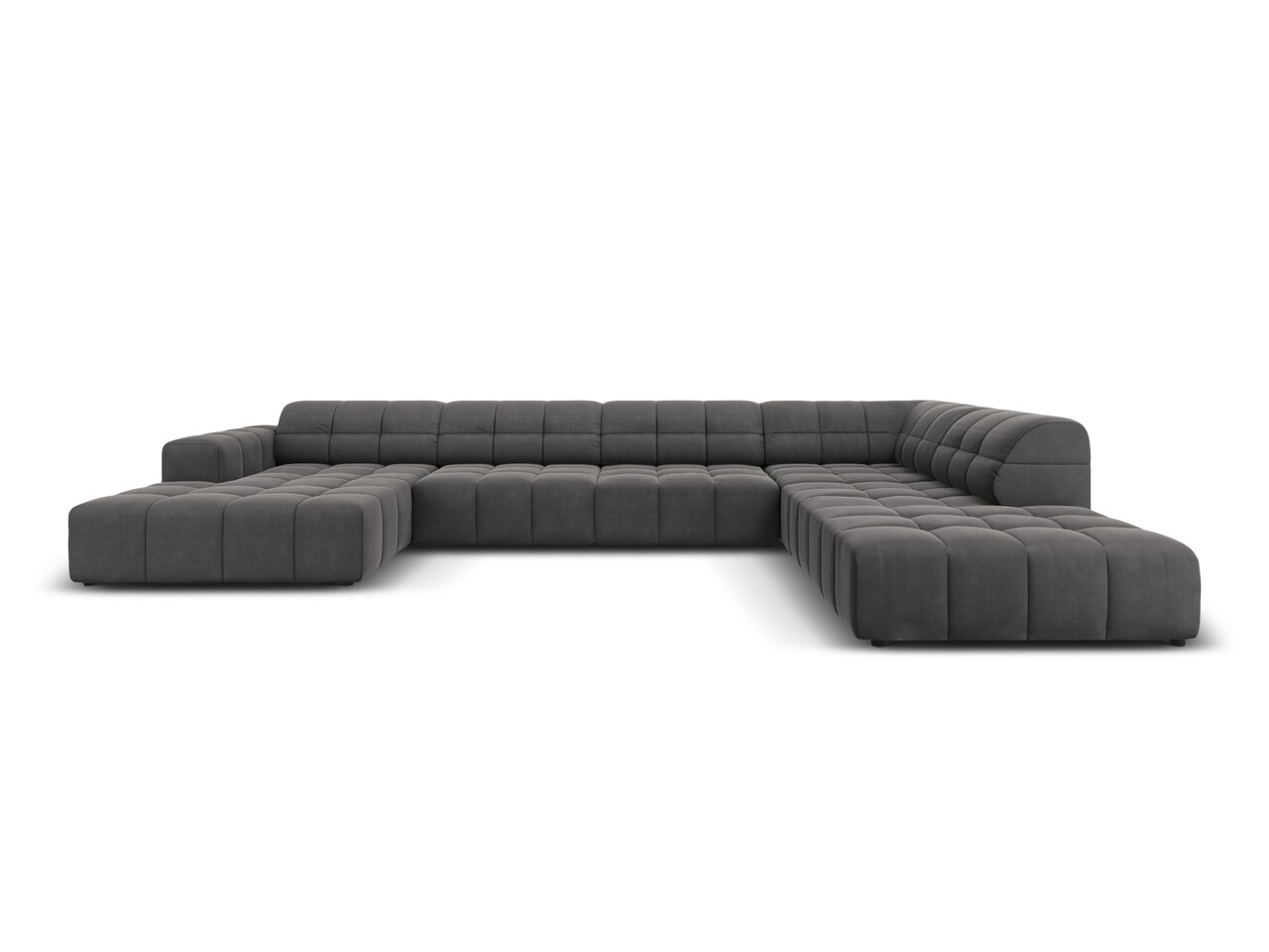 Coltar panoramic dreapta 7 locuri, Jennifer-51, Micadoni Home, 364x262x70 cm, catifea, gri