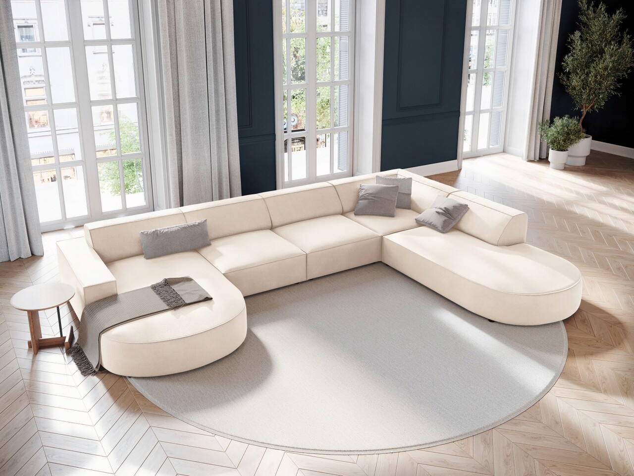 Coltar panoramic dreapta 7 locuri, Jodie, Micadoni Home, BL, forma rotunjita, 364x262x70 cm, catifea, bej deschis