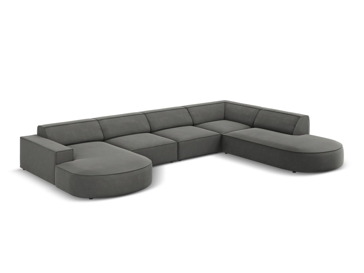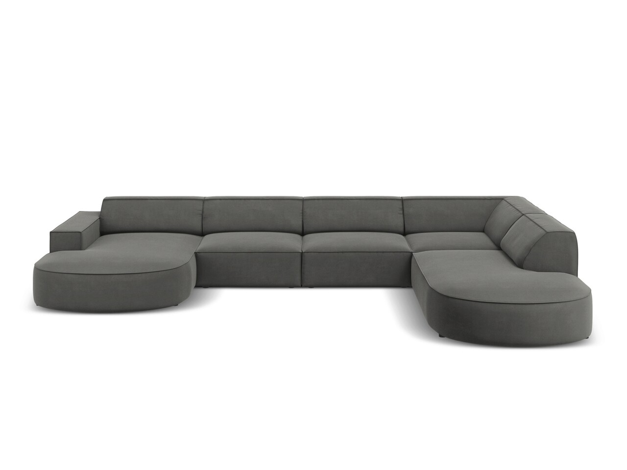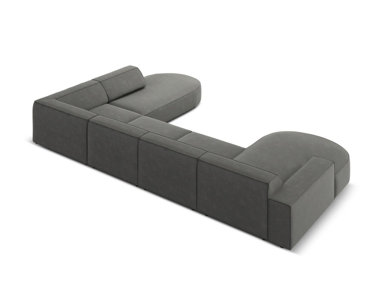 Coltar panoramic dreapta 7 locuri, Jodie, Micadoni Home, BL, forma rotunjita, 364x262x70 cm, catifea, gri deschis