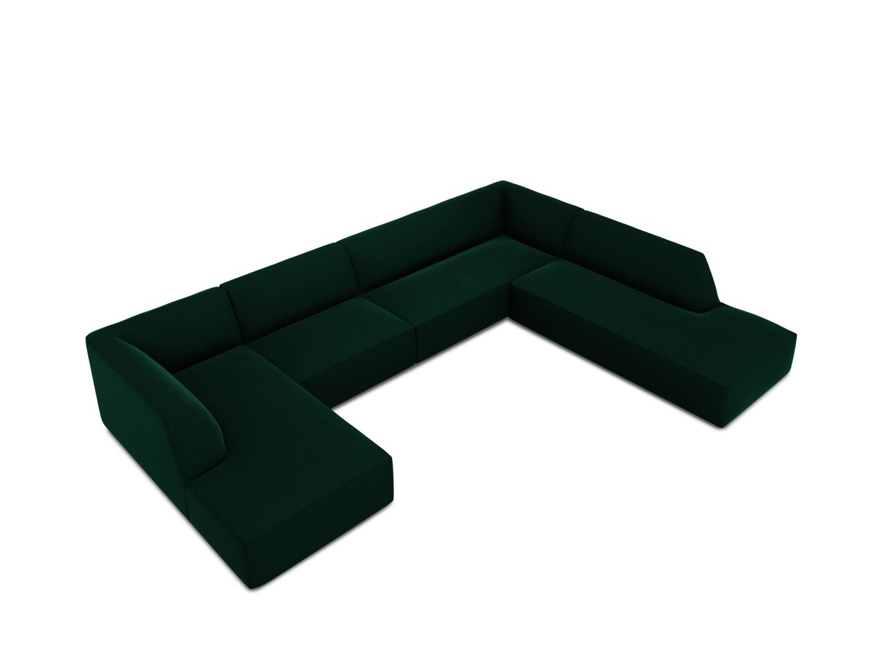Coltar panoramic dreapta 7 locuri, Ruby, Micadoni Home, BL, 366x273x69 cm, catifea, verde bottle