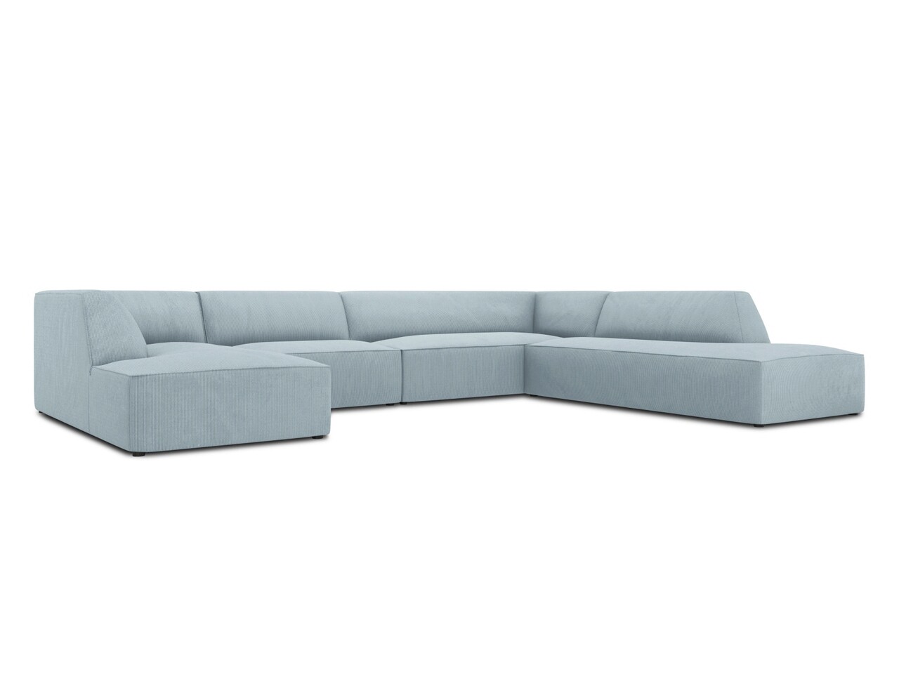 Coltar panoramic dreapta 7 locuri, Ruby, Micadoni Home, BL, 366x273x69 cm, velur, albastru deschis
