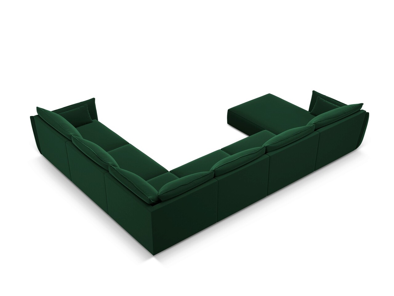 Coltar panoramic dreapta 8 locuri, Kaelle, Micadoni Home, BL, 384x284x85 cm, catifea, verde bottle