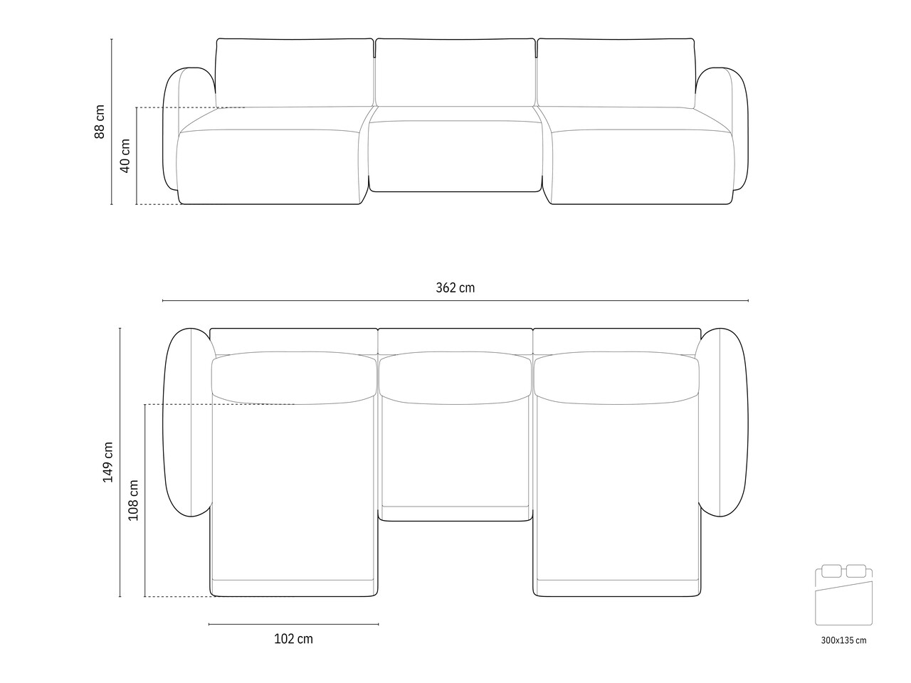 Dimensiuni suprafata de dormit: 300x135 cm.