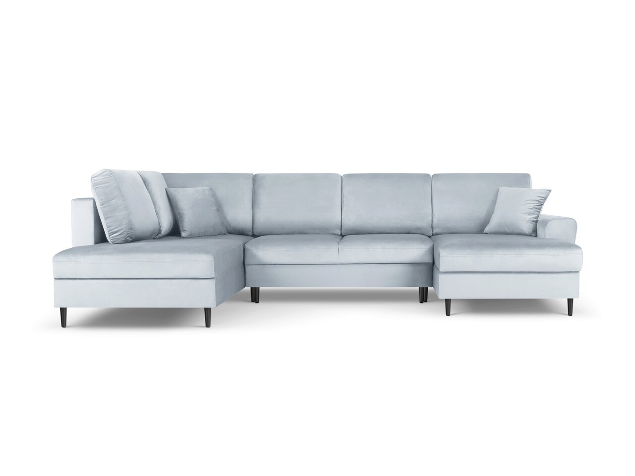 Coltar panoramic extensibil stanga 7 locuri, Moghan, Micadoni Home, BL, 313x194x88 cm, catifea, albastru deschis
