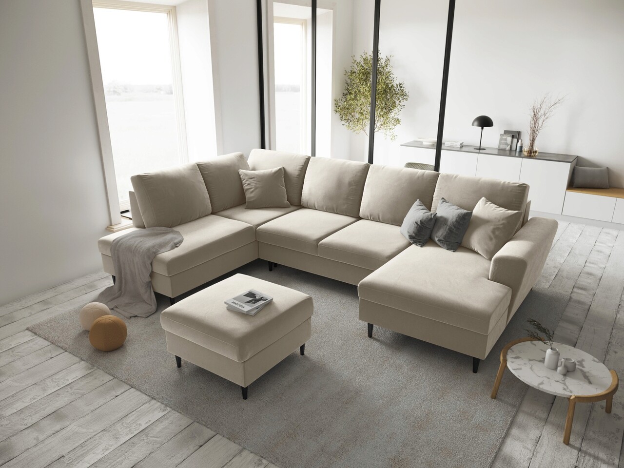 Coltar panoramic extensibil stanga 7 locuri, Moghan, Micadoni Home, BL, 313x194x88 cm, catifea, bej deschis