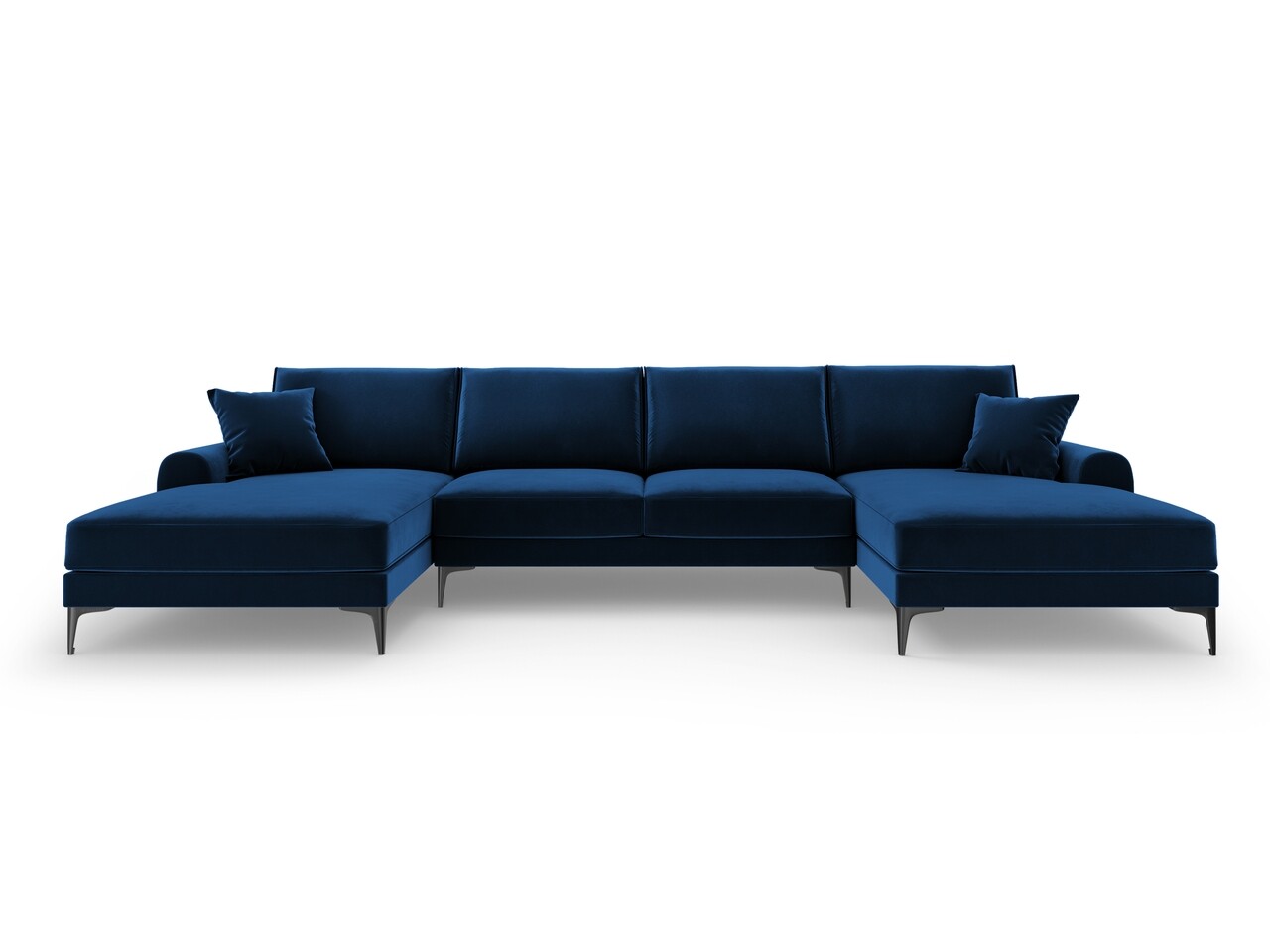 Coltar panoramic, Madara, Mazzini Sofas, 6 locuri, 334x182x90 cm, catifea, albastru regal