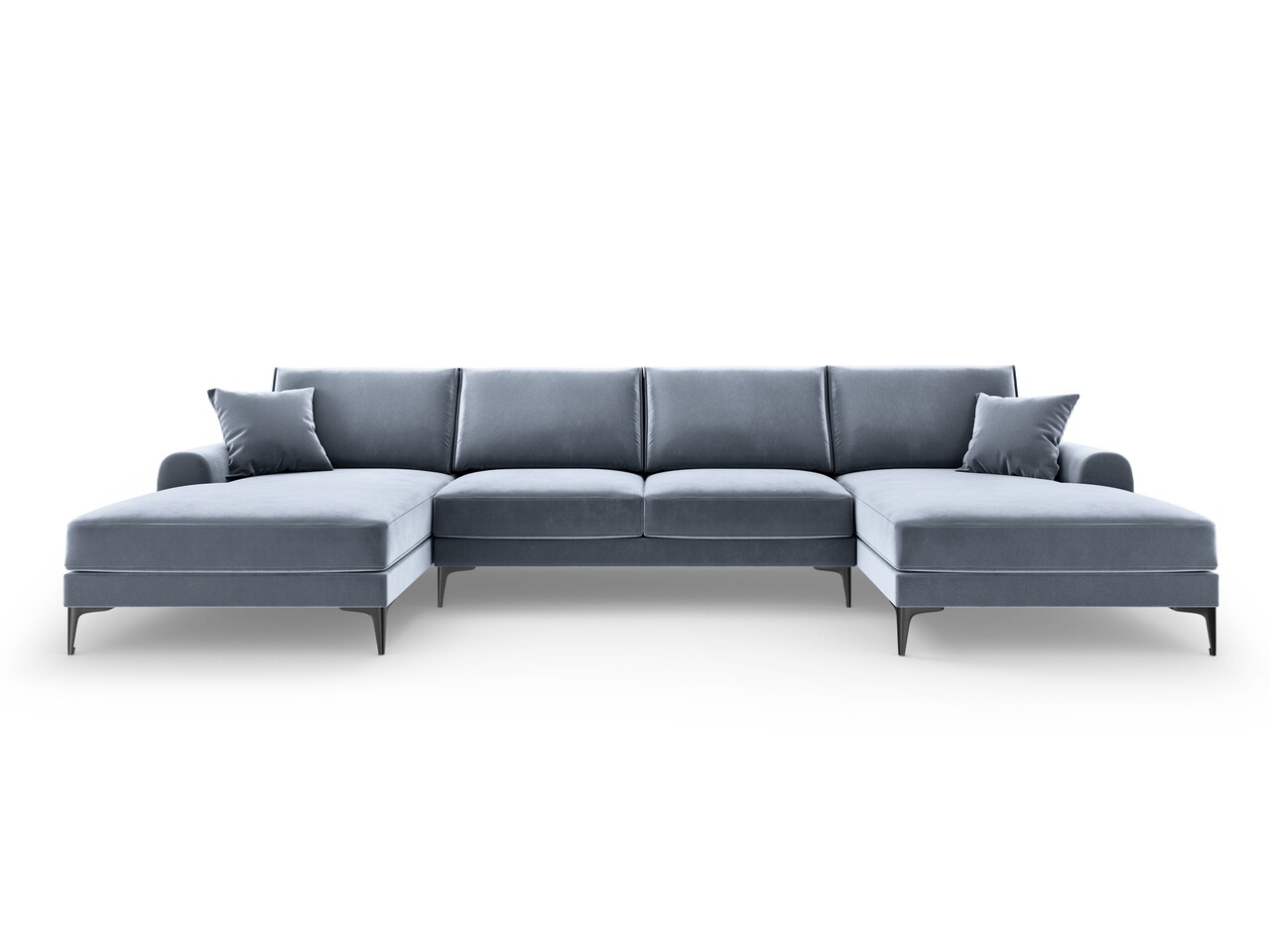 Coltar panoramic, Madara, Mazzini Sofas, 6 locuri, 334x182x90 cm, catifea, albastru deschis