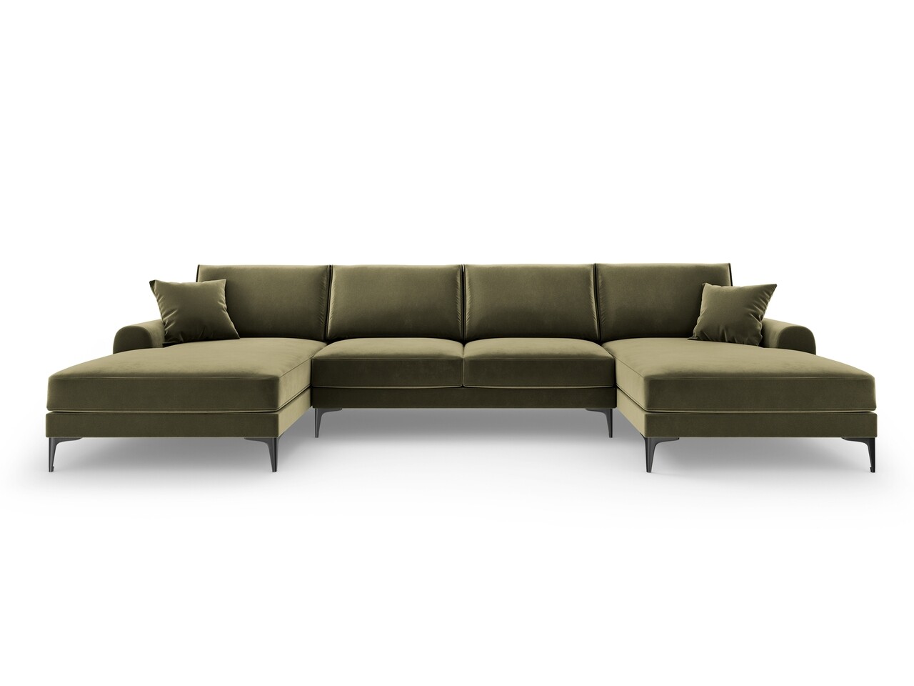 Coltar panoramic, Madara, Mazzini Sofas, 6 locuri, 334x182x90 cm, catifea, verde