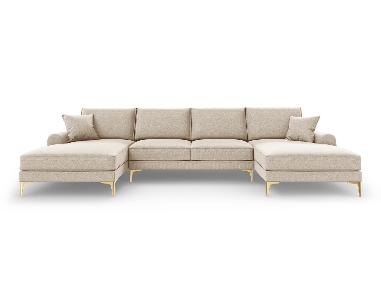 Coltar panoramic, Madara, Mazzini Sofas, 6 locuri, gold legs, 334x182x90 cm, material structurat, bej