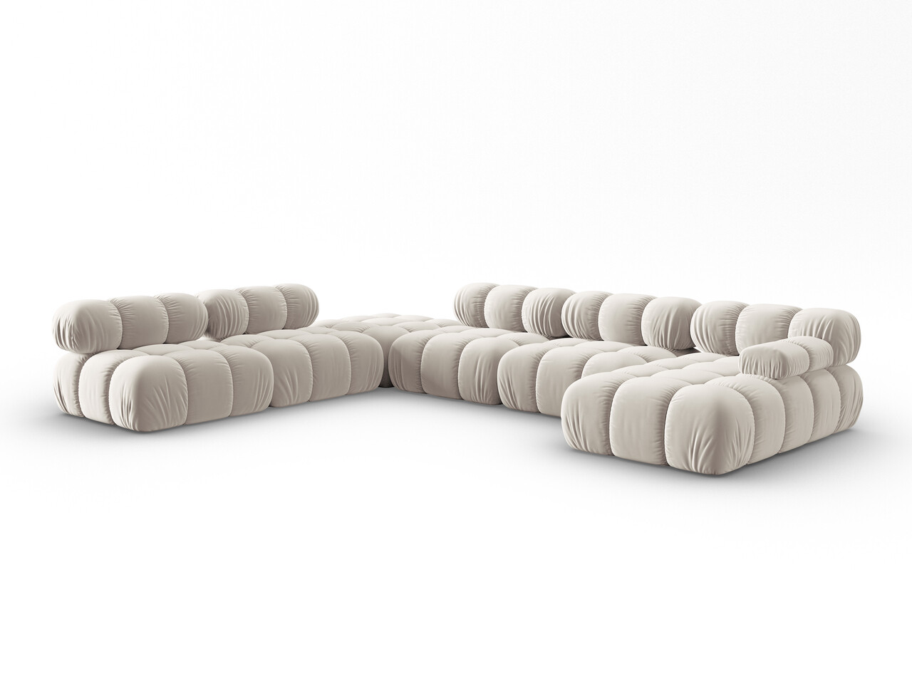 Coltar panoramic modular stanga 7 locuri, Bellis-51, Micadoni Home, 376x282x70 cm, catifea, bej inchis