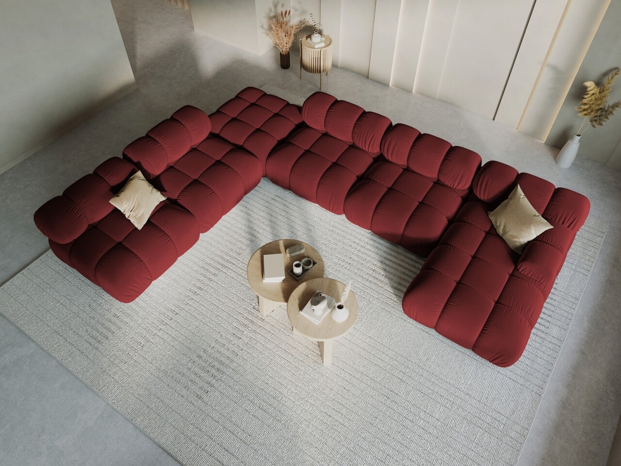 Coltar panoramic stanga 7 locuri design modular, Bellis, Micadoni Home, BL, 379x282x63 cm, catifea, rosu inchis