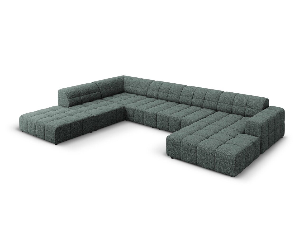 Coltar panoramic stanga 7 locuri, Jennifer-140, Micadoni Home, 364x262x70 cm, tesatura chenille din poliester, petrol