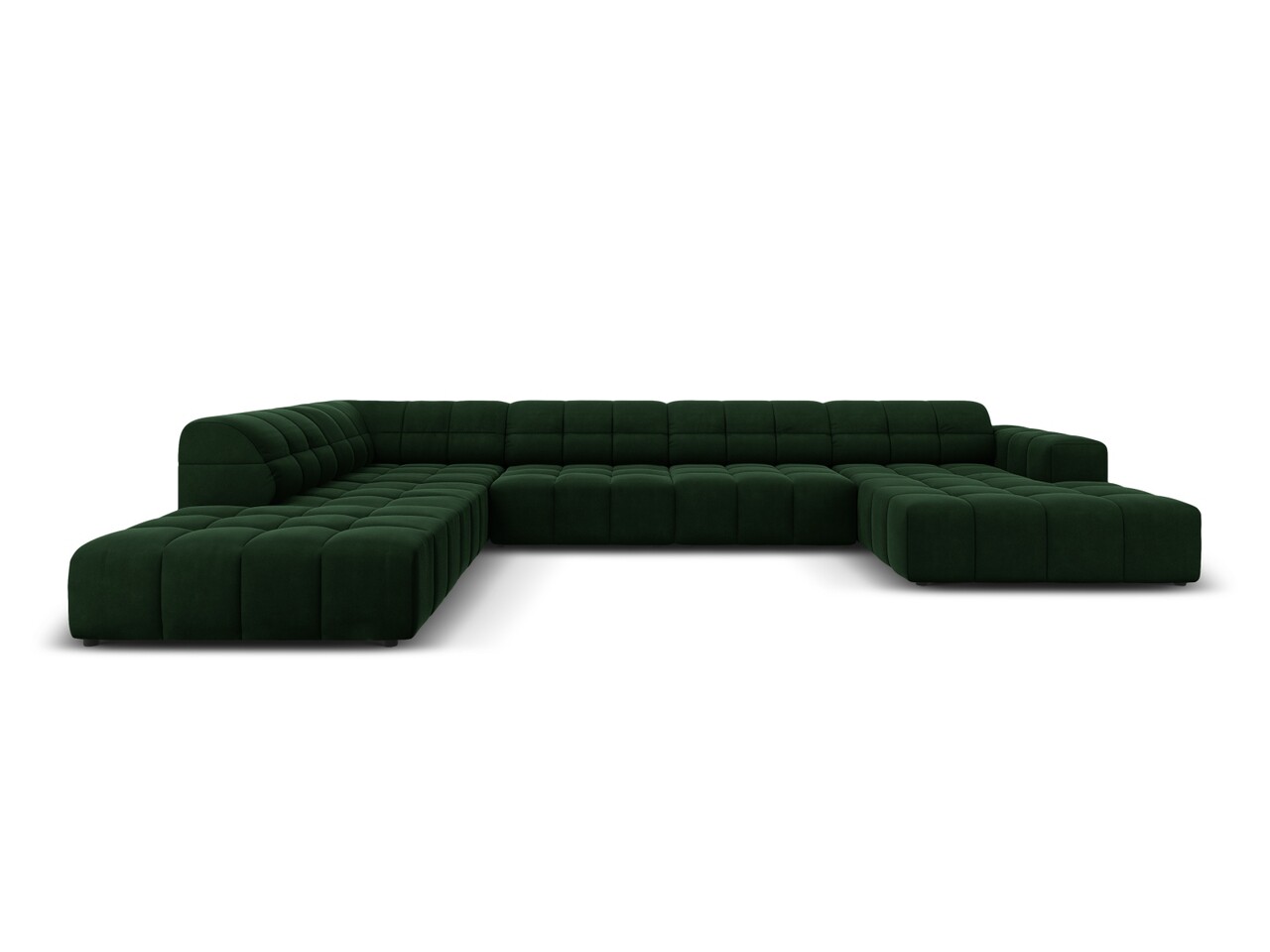 Coltar panoramic stanga 7 locuri, Jennifer-51, Micadoni Home, 364x262x70 cm, catifea, verde bottle
