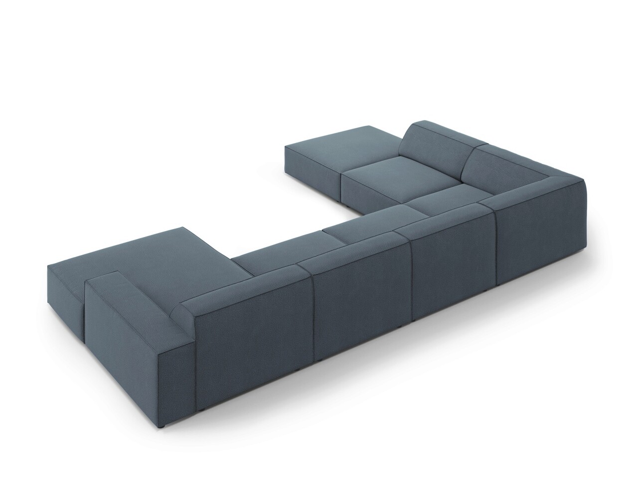 Coltar panoramic stanga 7 locuri, Jodie, Micadoni Home, BL, 364x262x70 cm, poliester, albastru