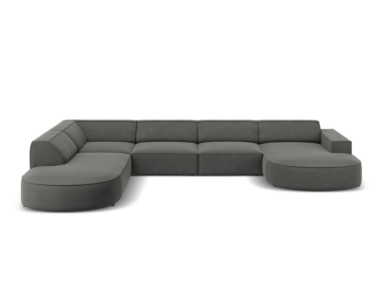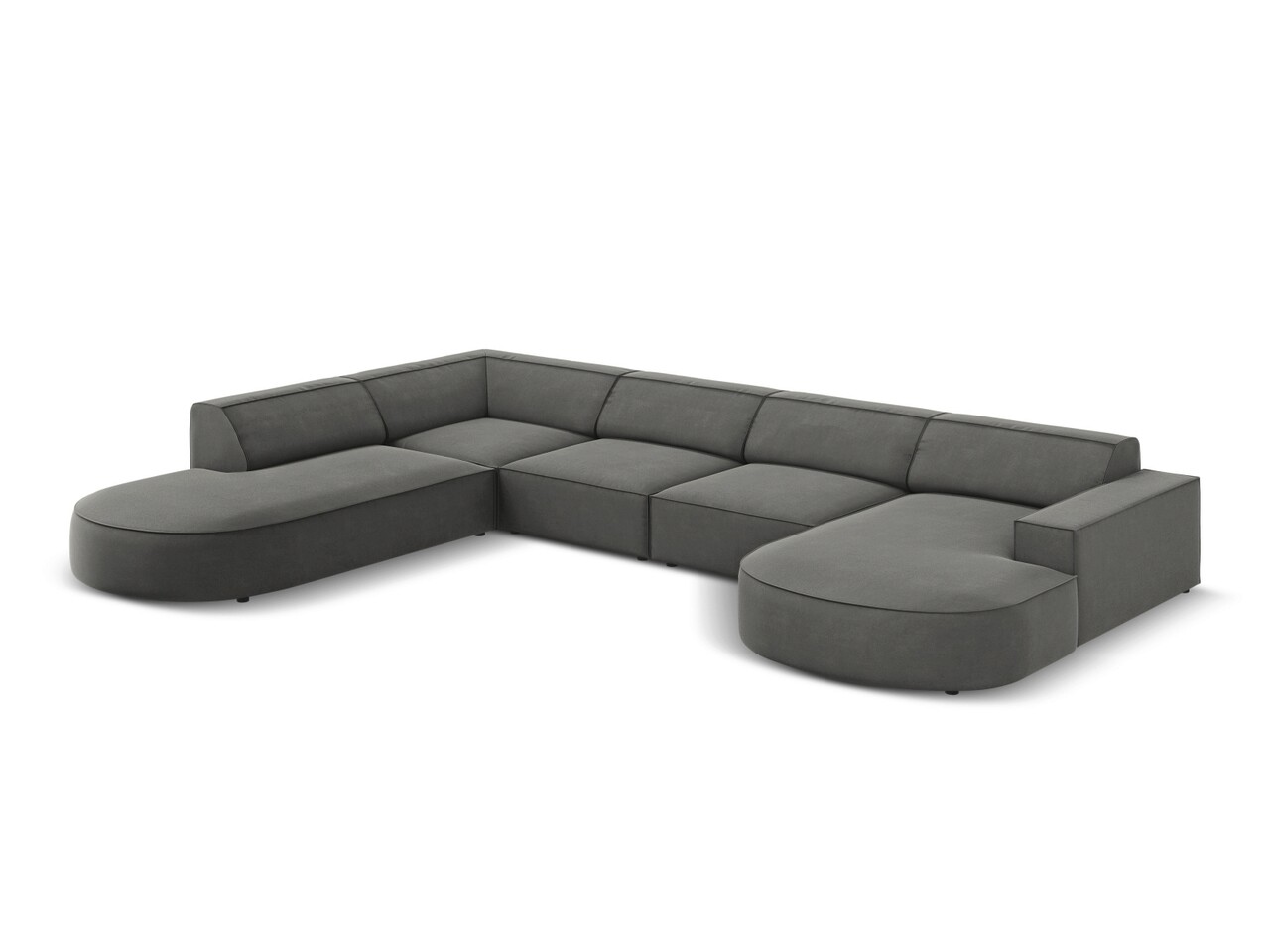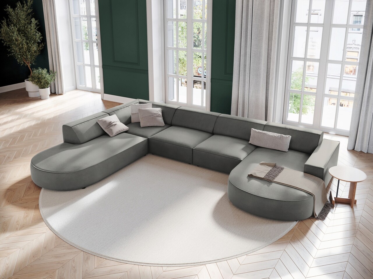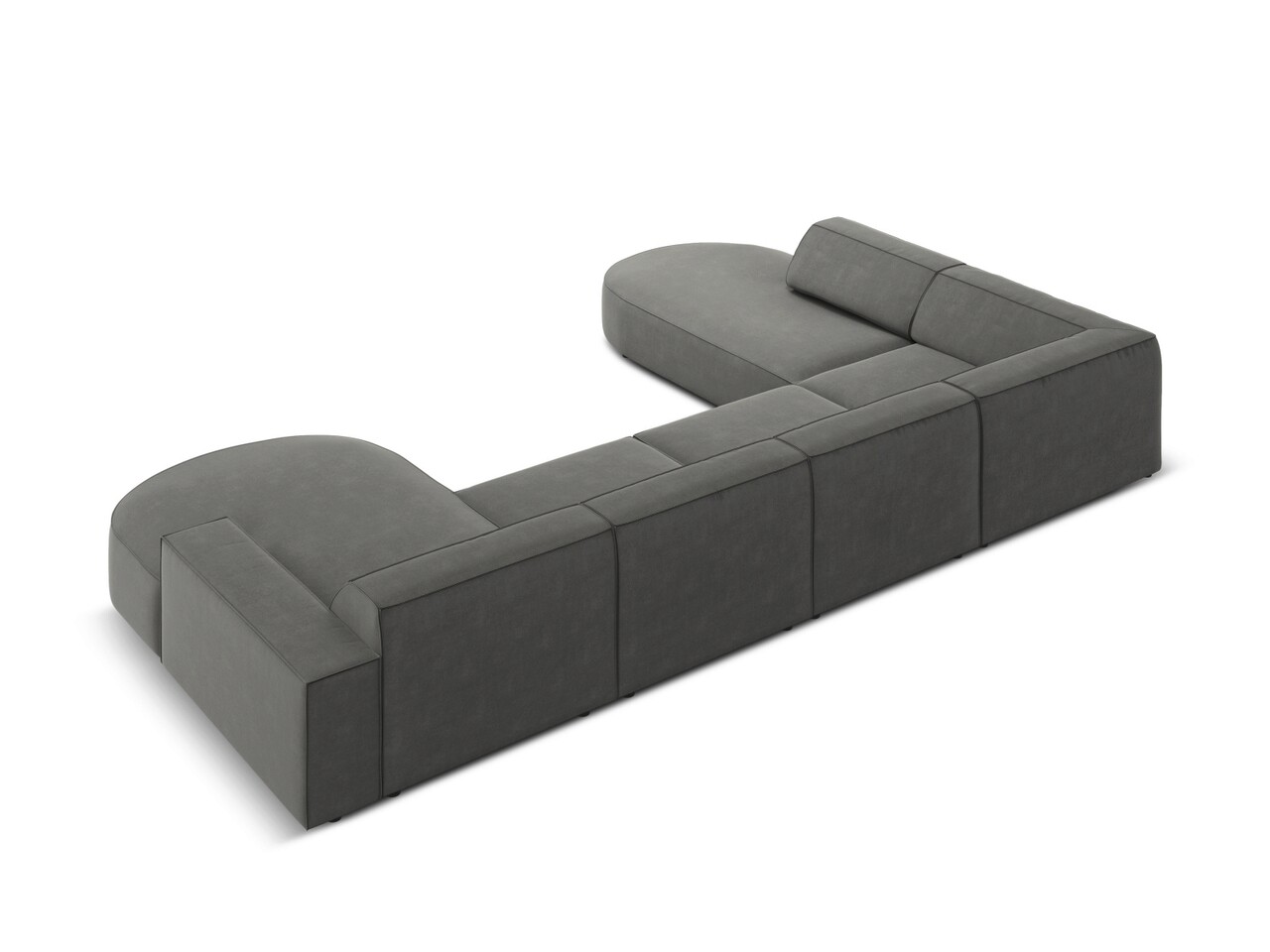 Coltar panoramic stanga 7 locuri, Jodie, Micadoni Home, BL, forma rotunjita, 364x262x70 cm, catifea, gri deschis
