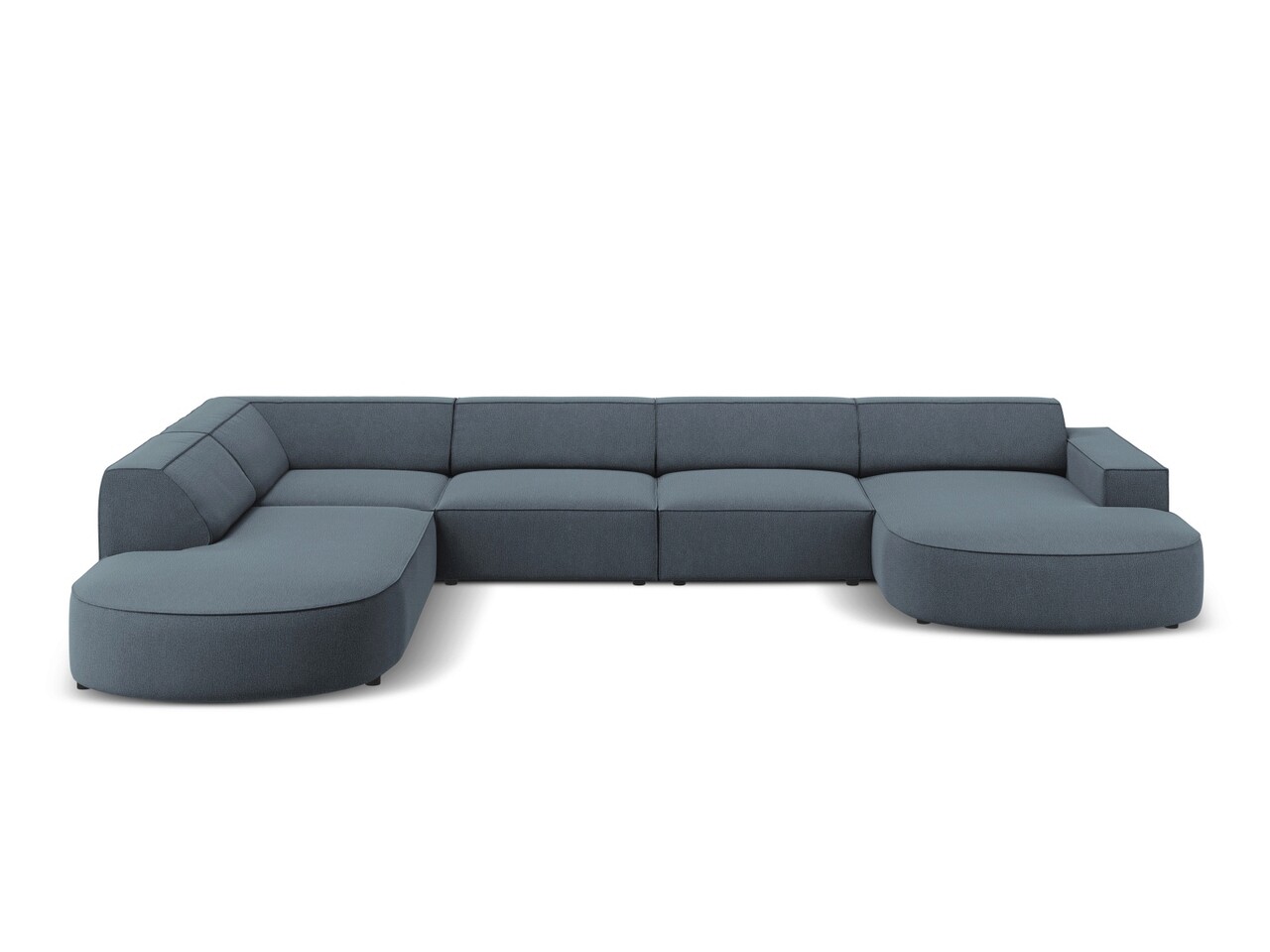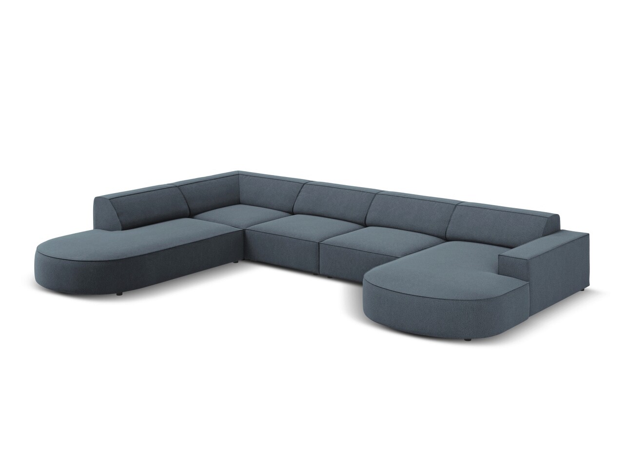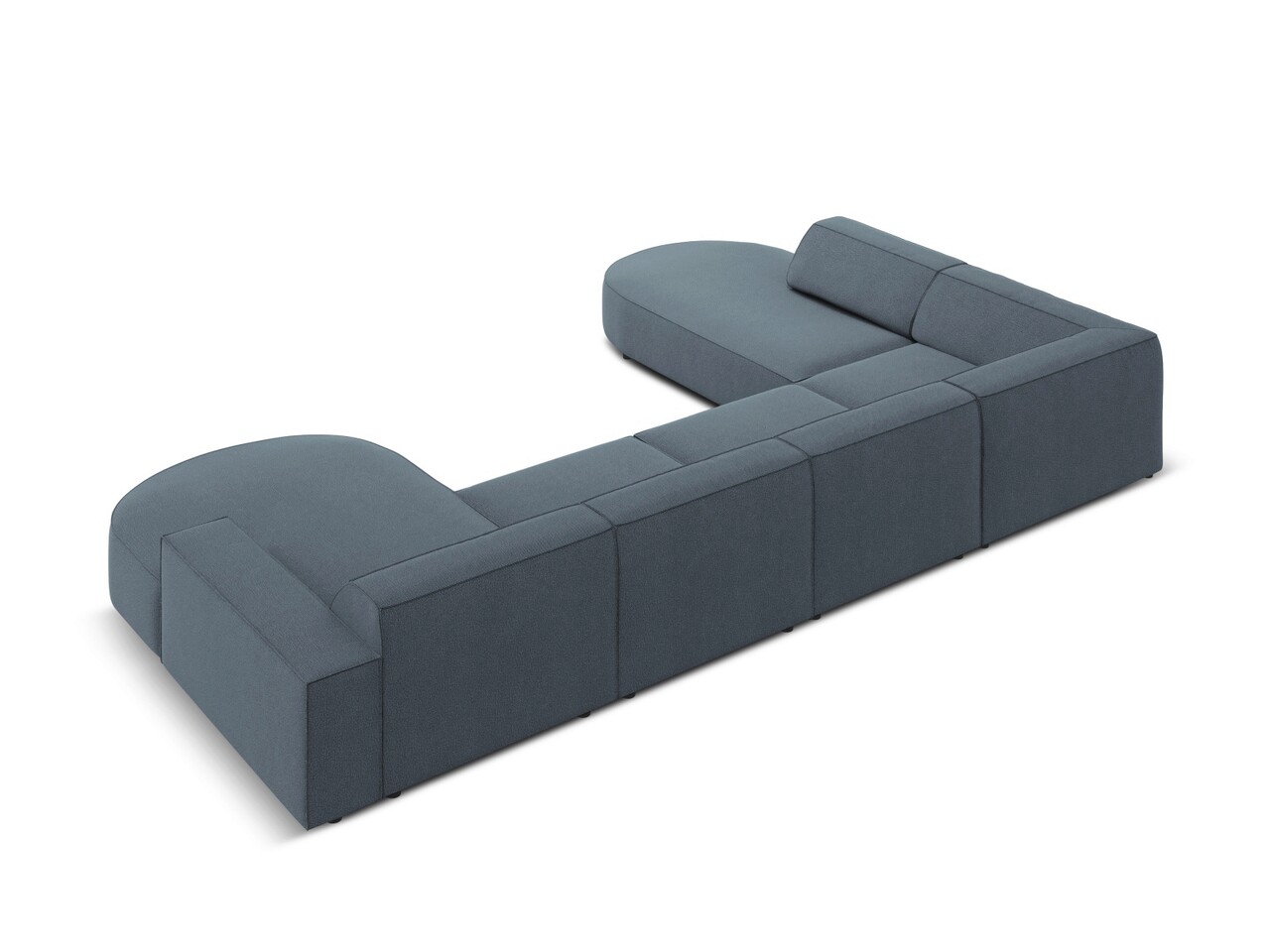 Coltar panoramic stanga 7 locuri, Jodie, Micadoni Home, BL, forma rotunjita, 364x262x70 cm, poliester, albastru