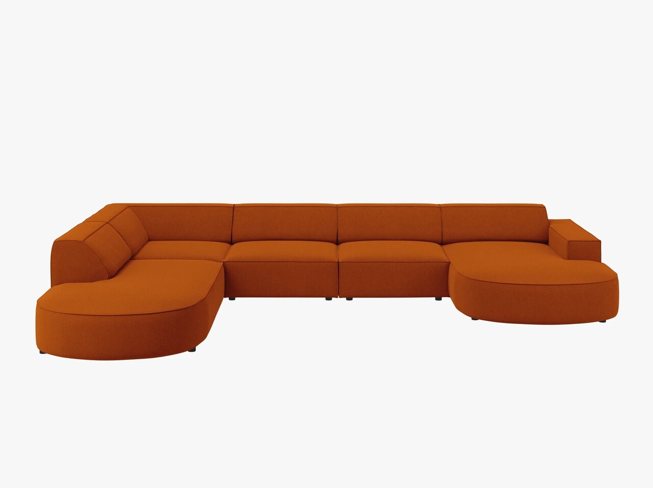 Coltar panoramic stanga 7 locuri, Jodie, Micadoni Home, BL, forma rotunjita, 364x262x70 cm, poliester, caramiziu