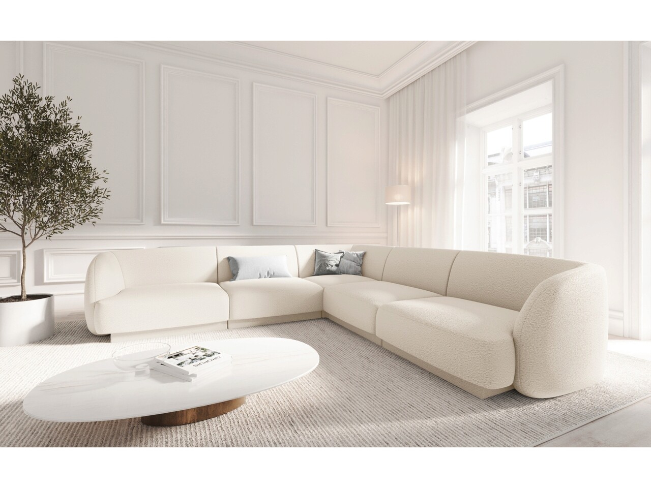 Coltar reversibil 5 locuri, Miley, Micadoni Home, BL, 252x252x74 cm, poliester Boucle, bej
