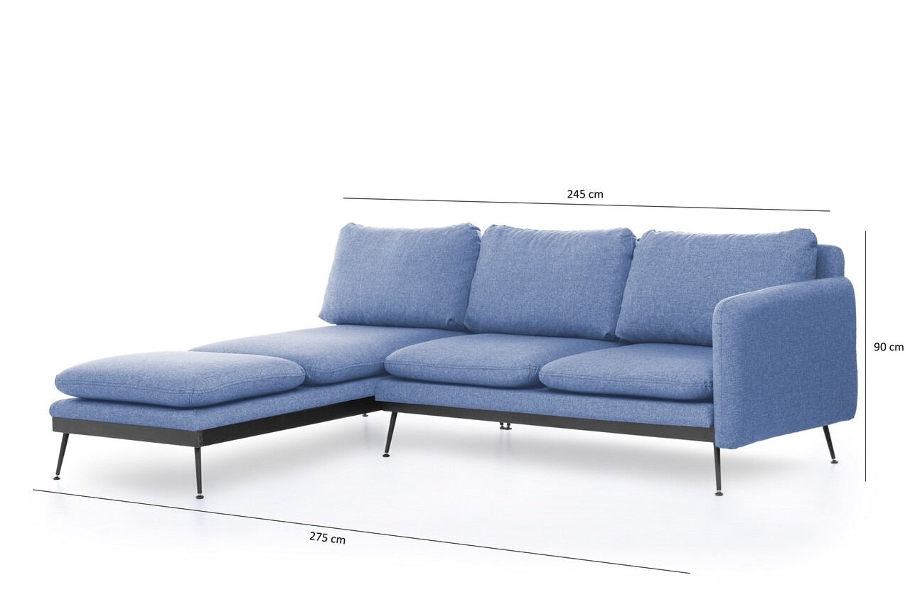 Coltar Reya Corner, Futon, 275x190x90 cm, metal, albastru grizzled