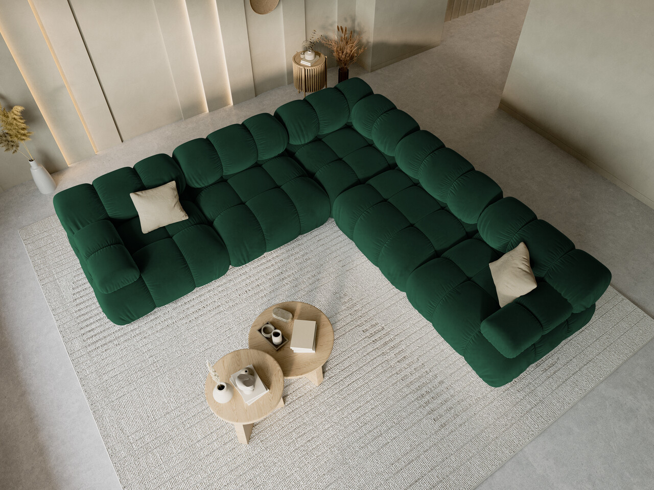 Coltar simetric 5 locuri, Bellis-51, Micadoni Home, 282x282x70 cm, catifea, verde bottle