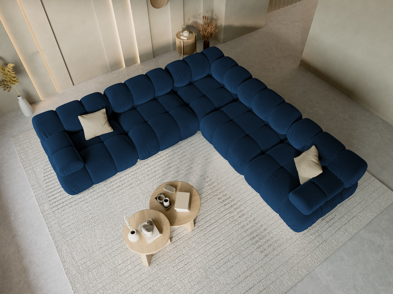 Coltar simetric 5 locuri, Bellis-51, Micadoni Home, 282x282x70 cm, catifea, albastru regal