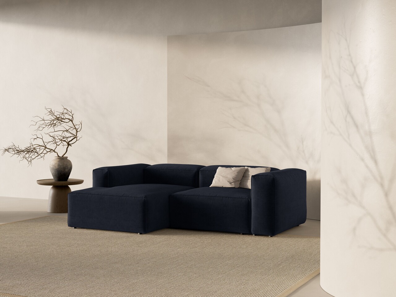 Coltar stanga 2 locuri, Bergamo, Cosmopolitan Design, 244x152x70 cm, tesatura structurata, albastru navy