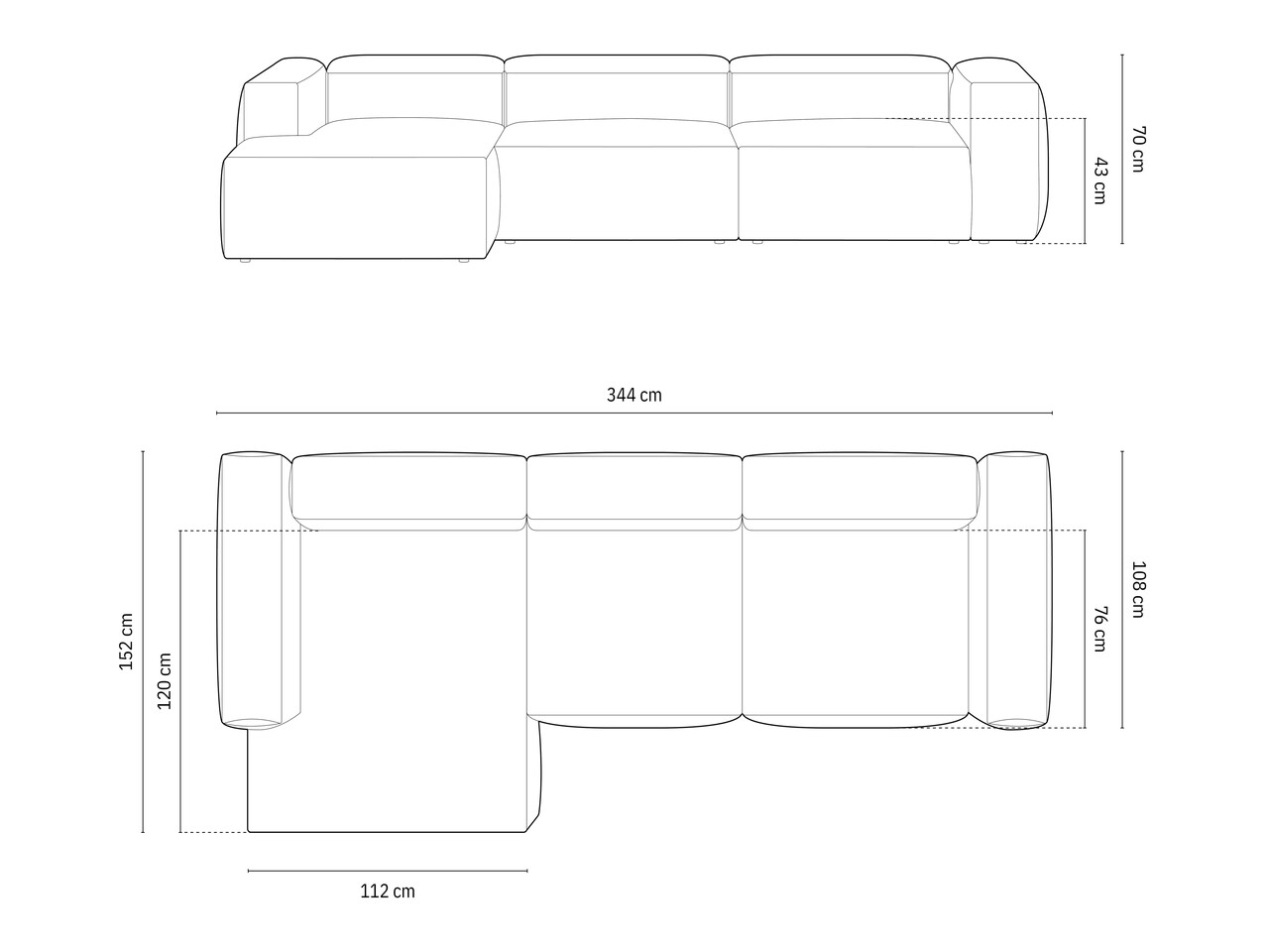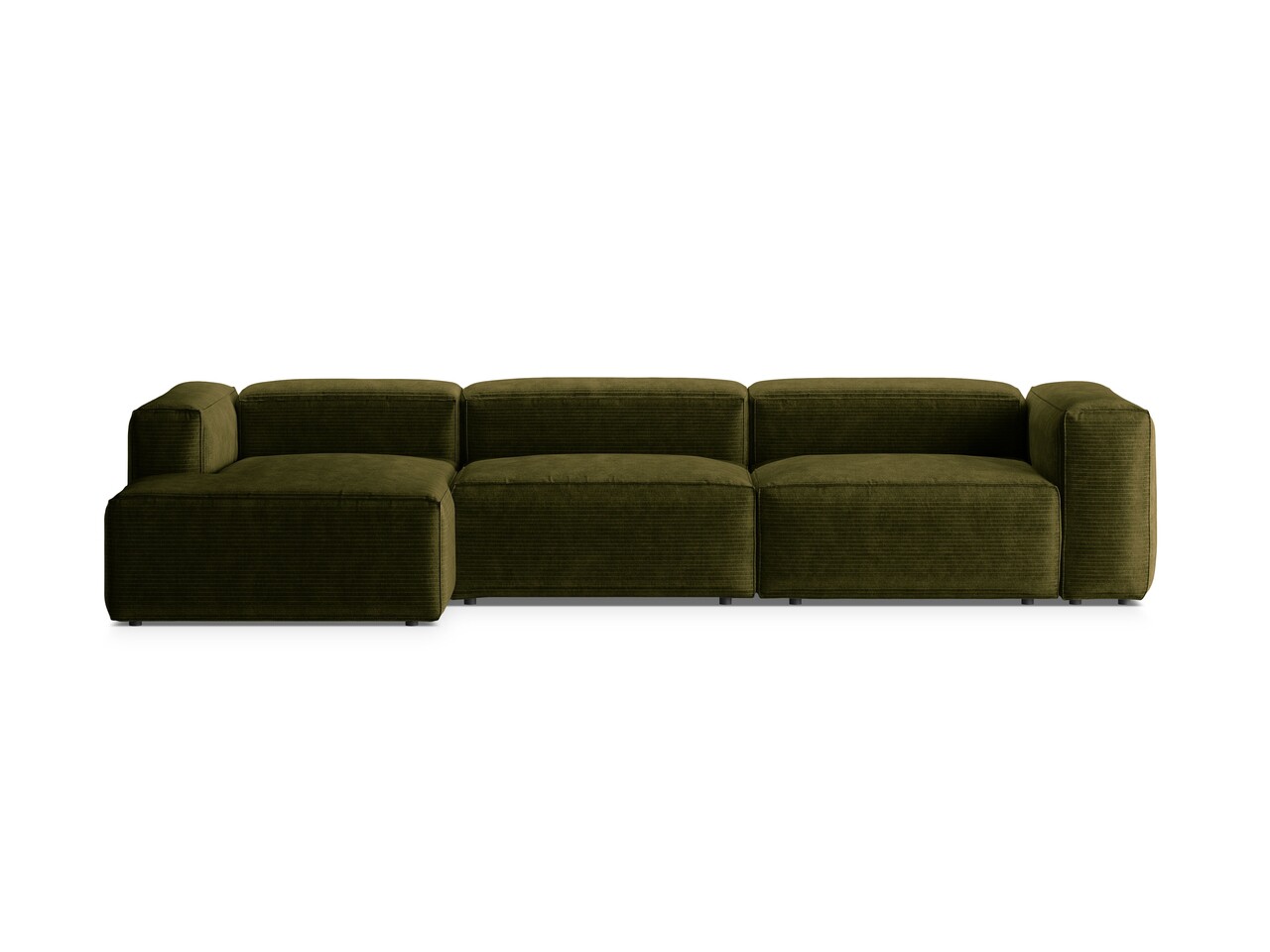 Coltar stanga 4 locuri, Bergamo, Cosmopolitan Design, 344x152x70 cm, catifea chenille raiata, verde