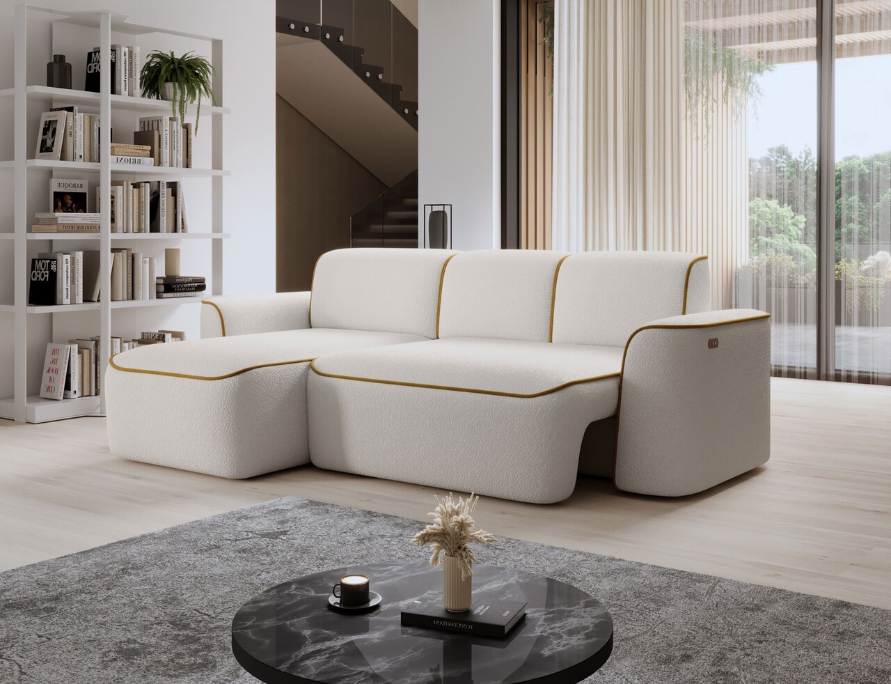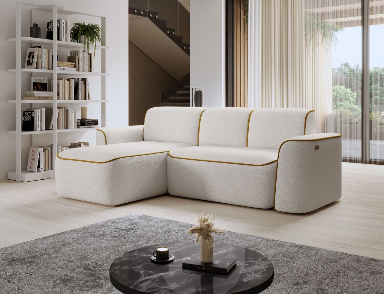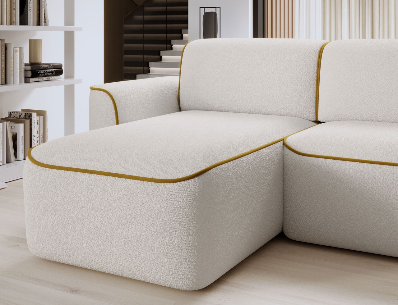 Coltar stanga 4 locuri ELTAP, Ume, 287x190x88 cm, lemn/poliester, alb/galben