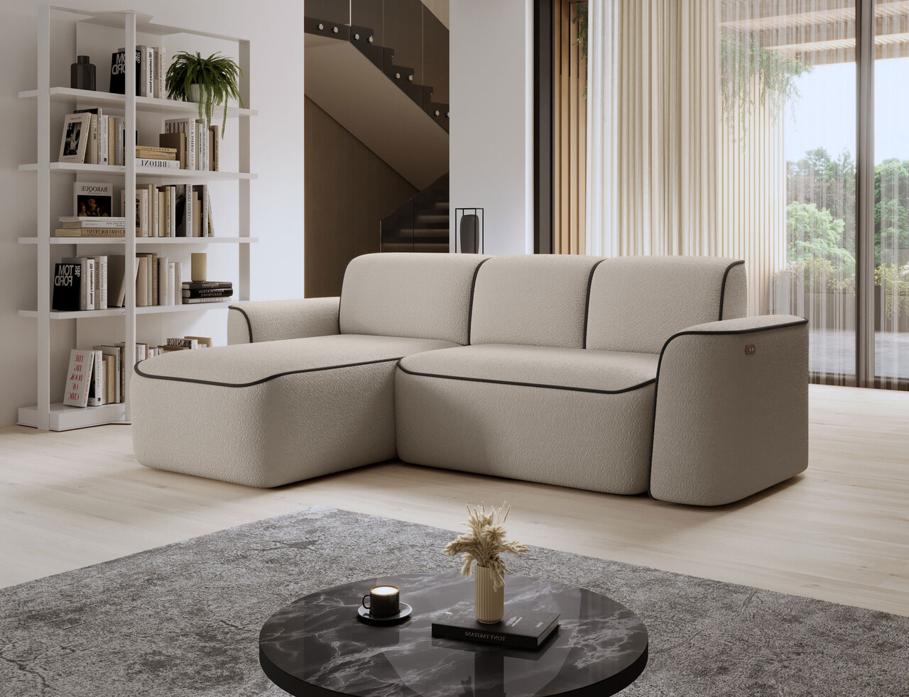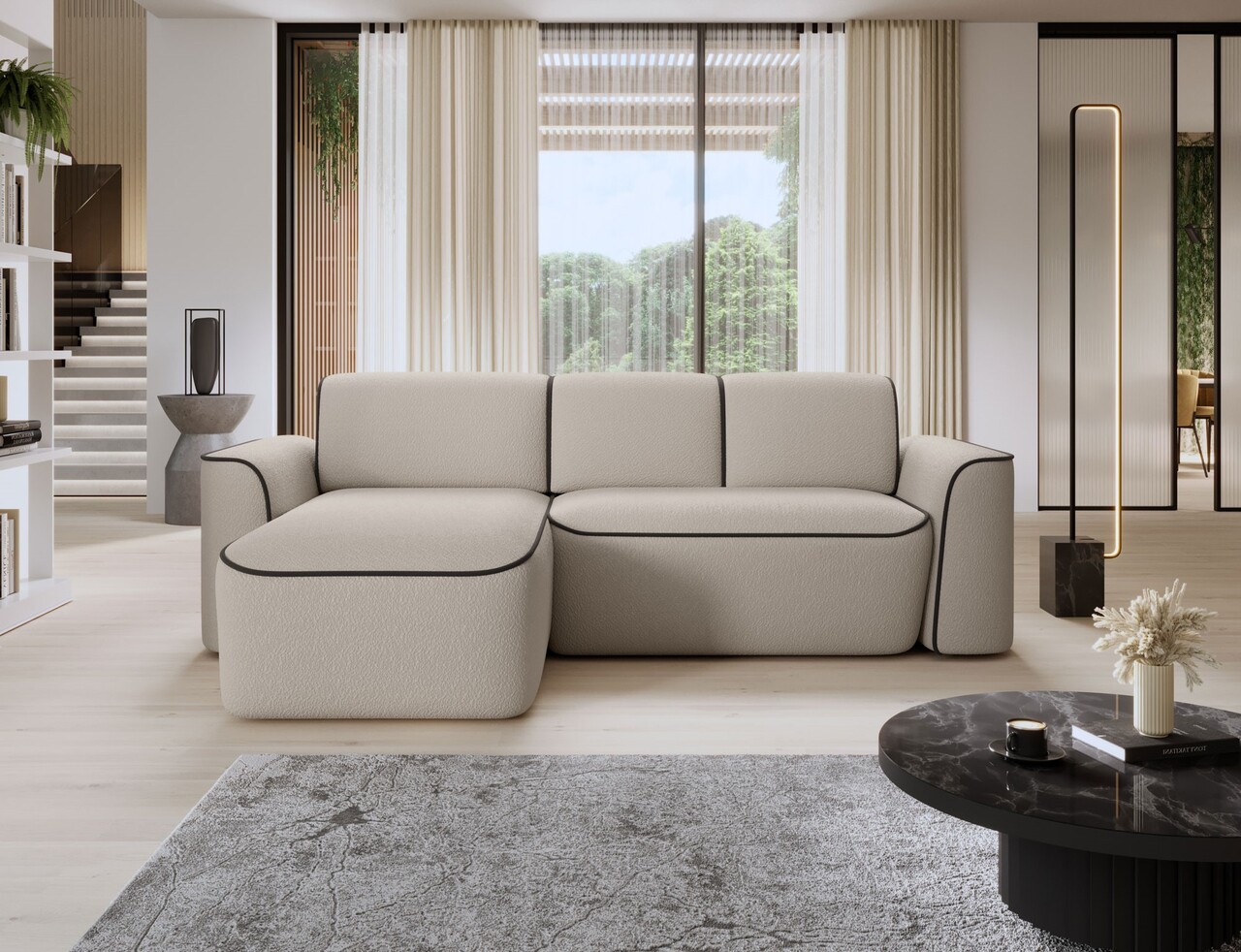 Coltar stanga 4 locuri ELTAP, Ume, 287x190x88 cm, lemn/poliester, bej/maro inchis