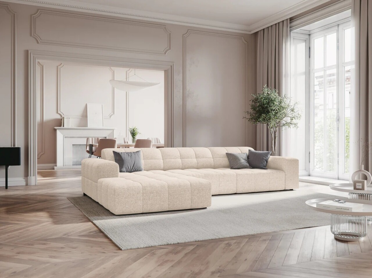 Coltar stanga 4 locuri, Jennifer-140, Micadoni Home, 284x166x70 cm, tesatura chenille din poliester, bej deschis