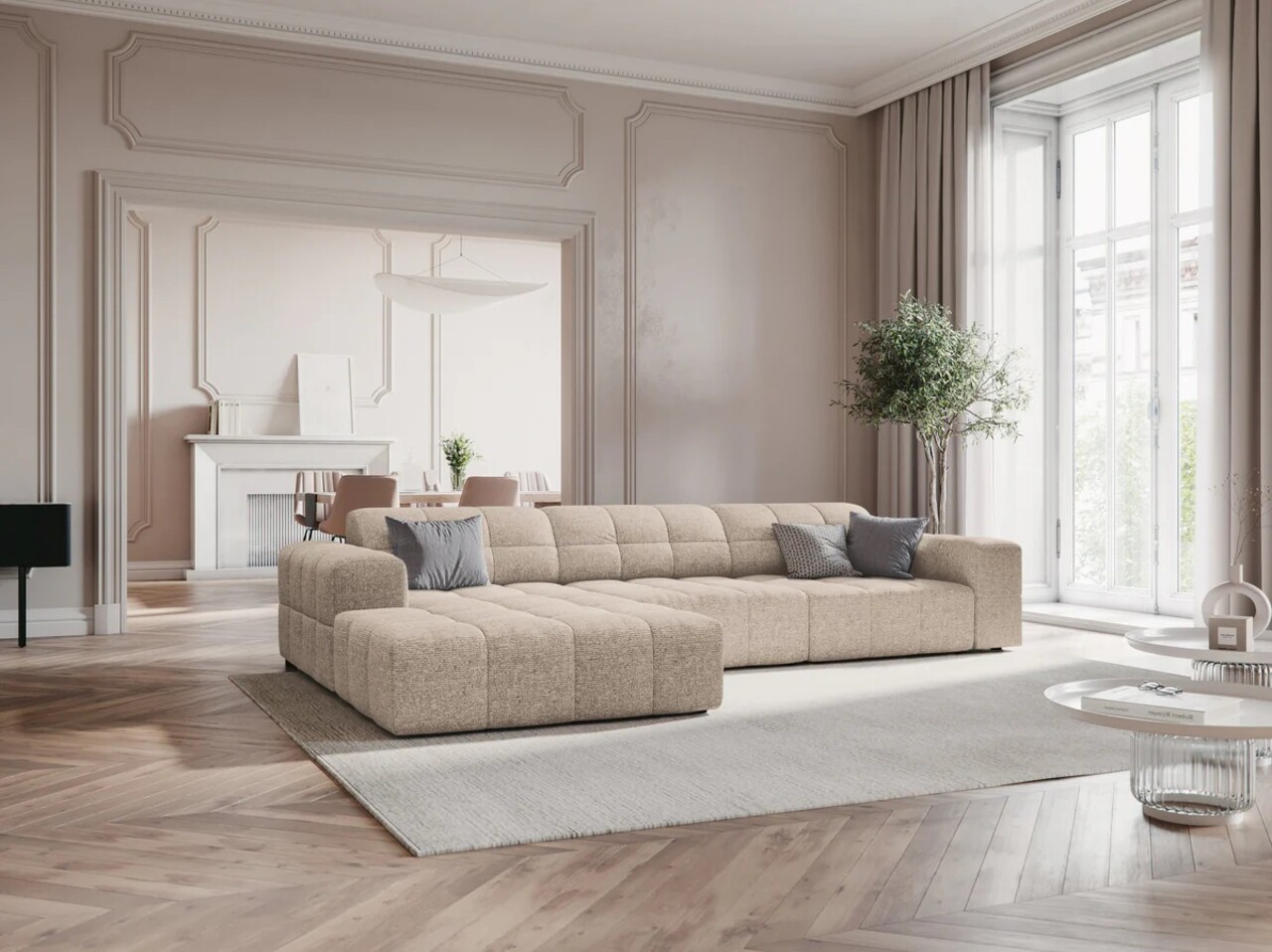 Coltar stanga 4 locuri, Jennifer-140, Micadoni Home, 284x166x70 cm, tesatura chenille din poliester, bej