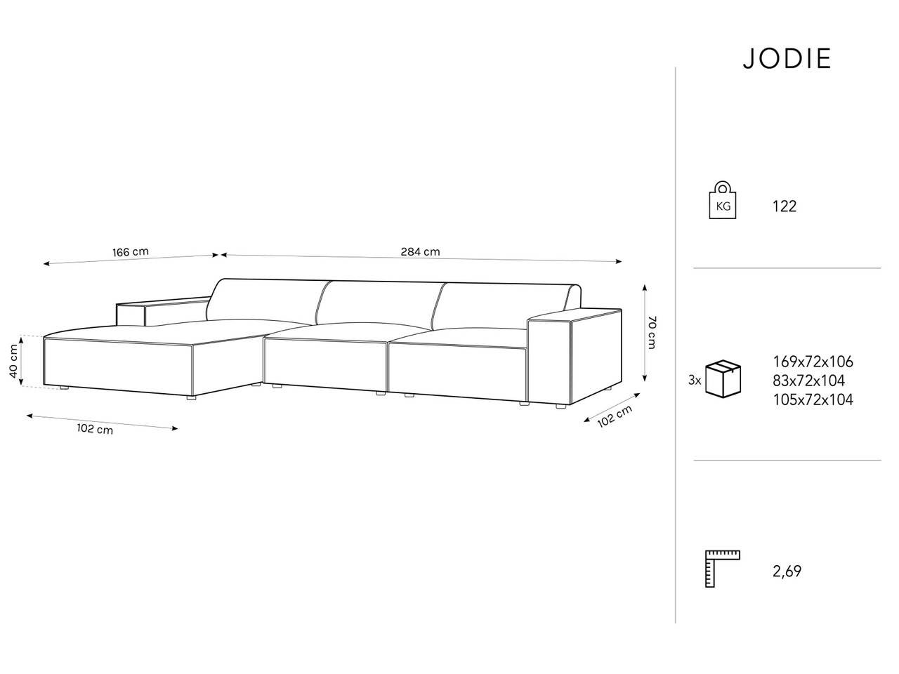 Coltar stanga 4 locuri, Jodie, Micadoni Home, BL, 284x166x70 cm, poliester, caramiziu