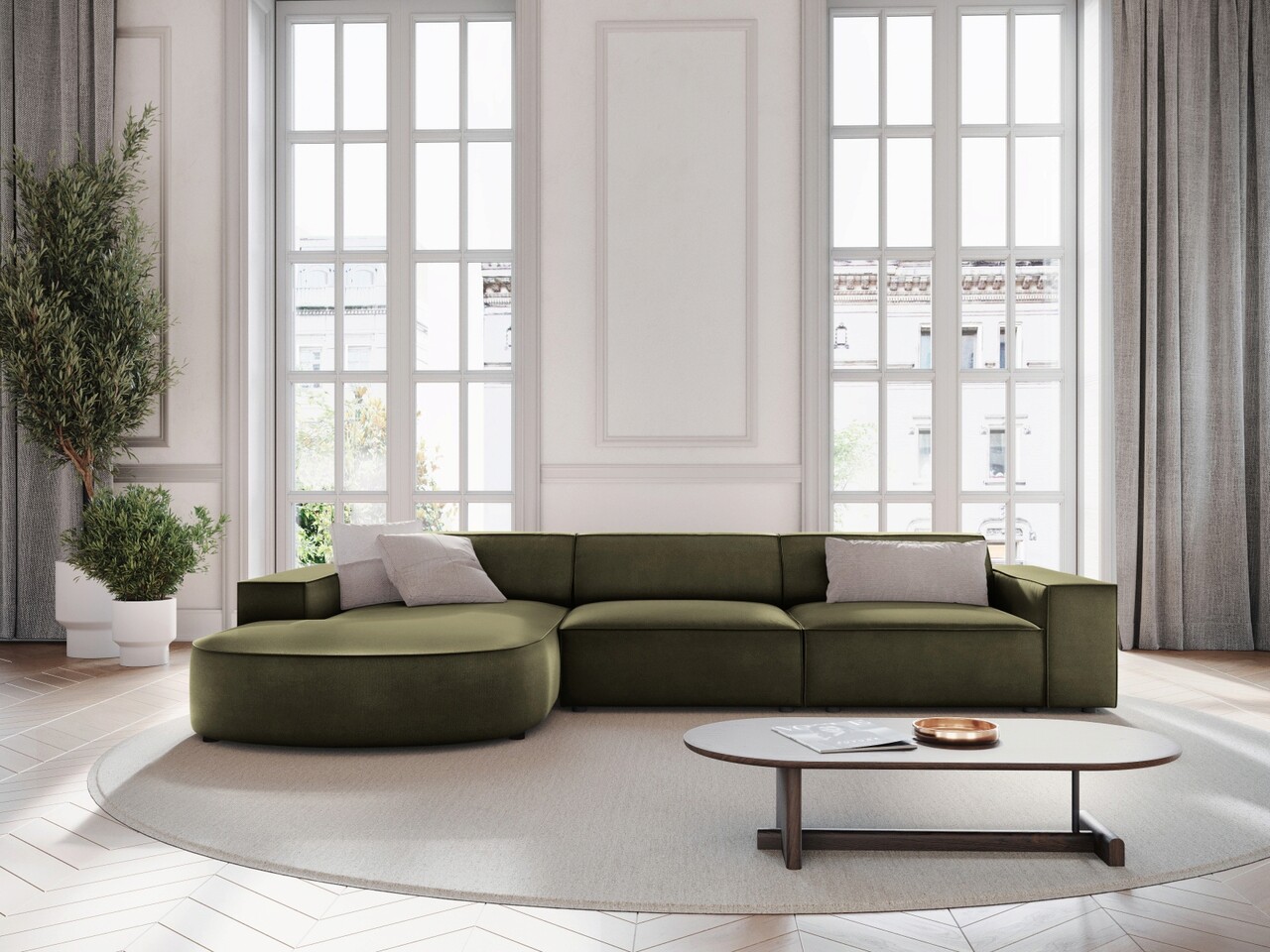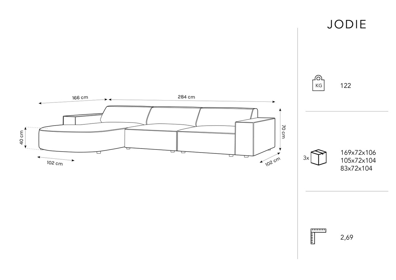 Coltar stanga 4 locuri, Jodie, Micadoni Home, BL, forma rotunjita, 284x166x70 cm, catifea, verde