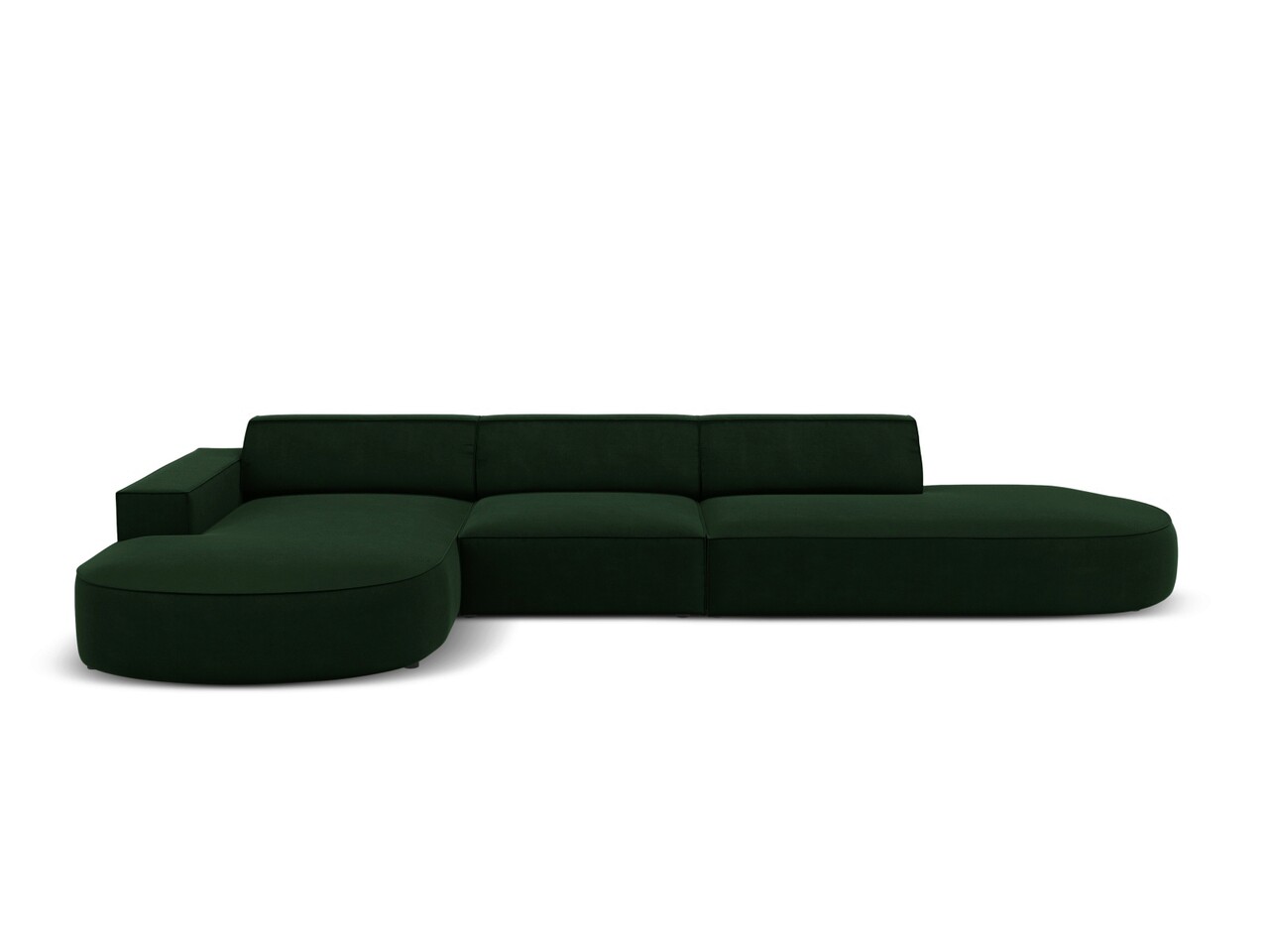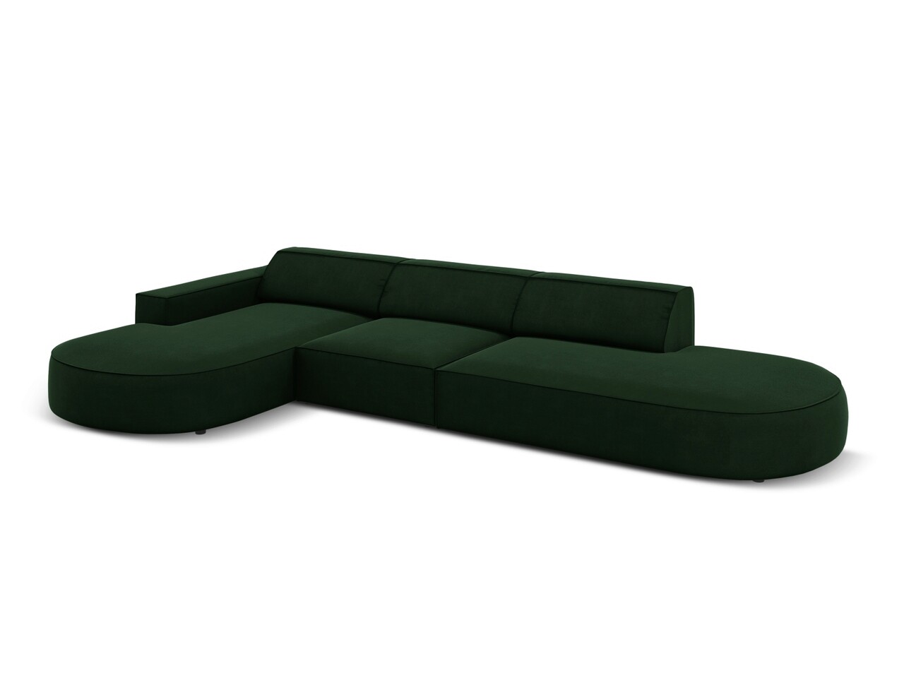 Coltar stanga 4 locuri, Jodie, Micadoni Home, BL, forma rotunjita, 342x166x70 cm, catifea, verde bottle