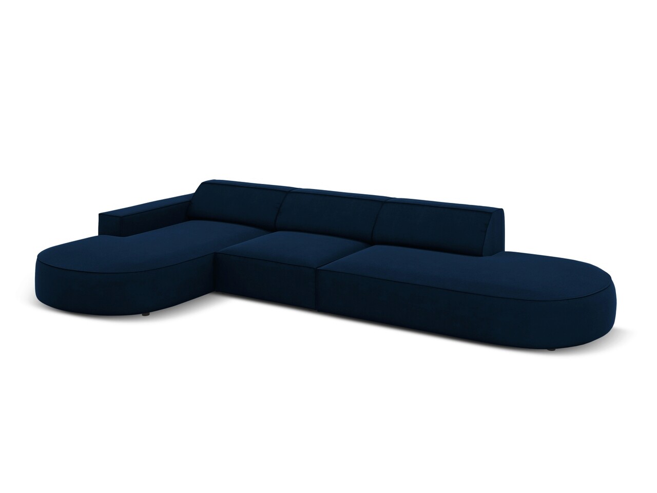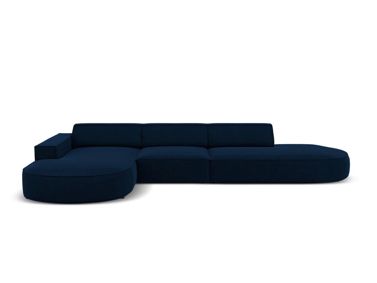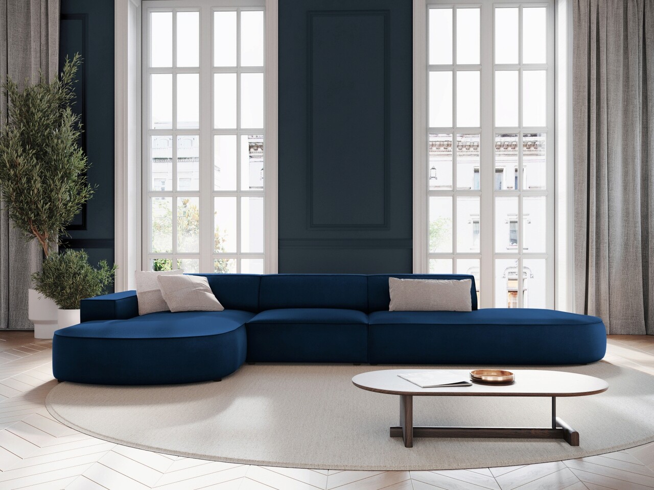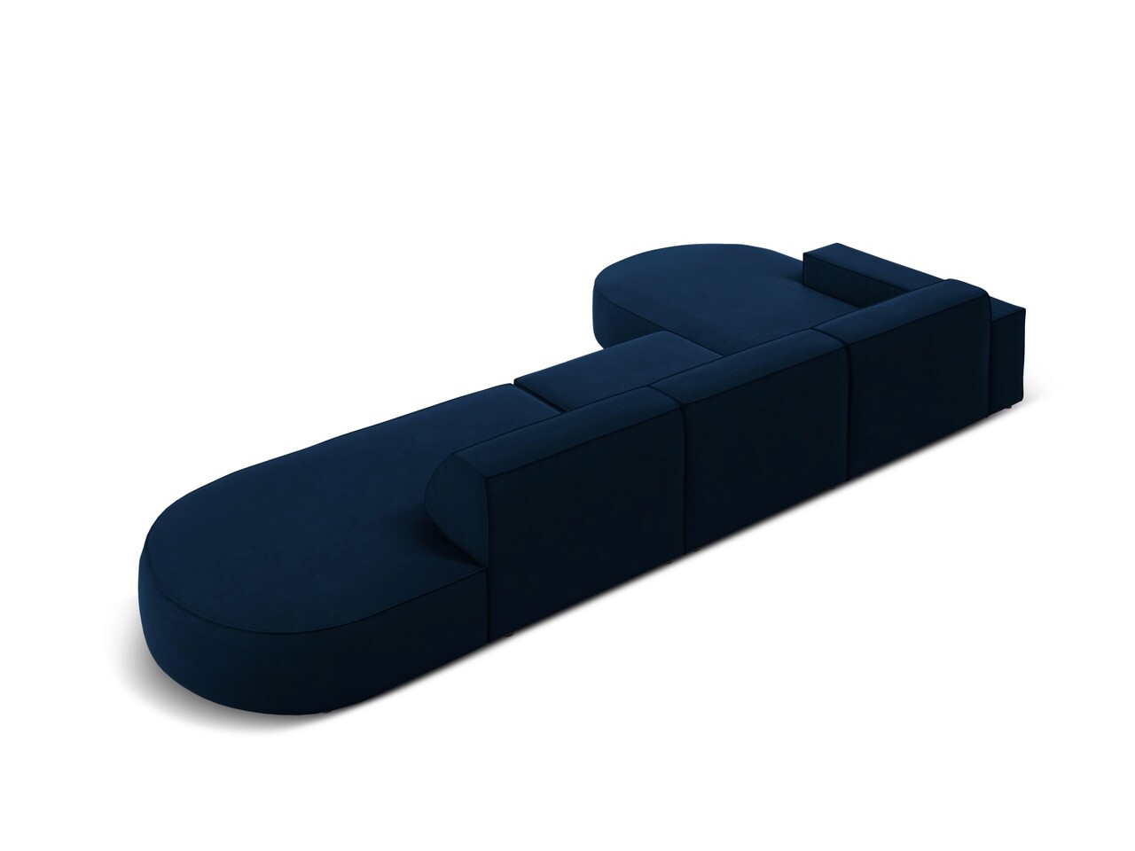Coltar stanga 4 locuri, Jodie, Micadoni Home, BL, forma rotunjita, 342x166x70 cm, catifea, albastru regal