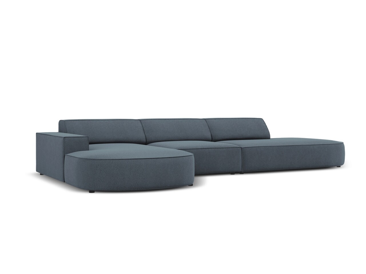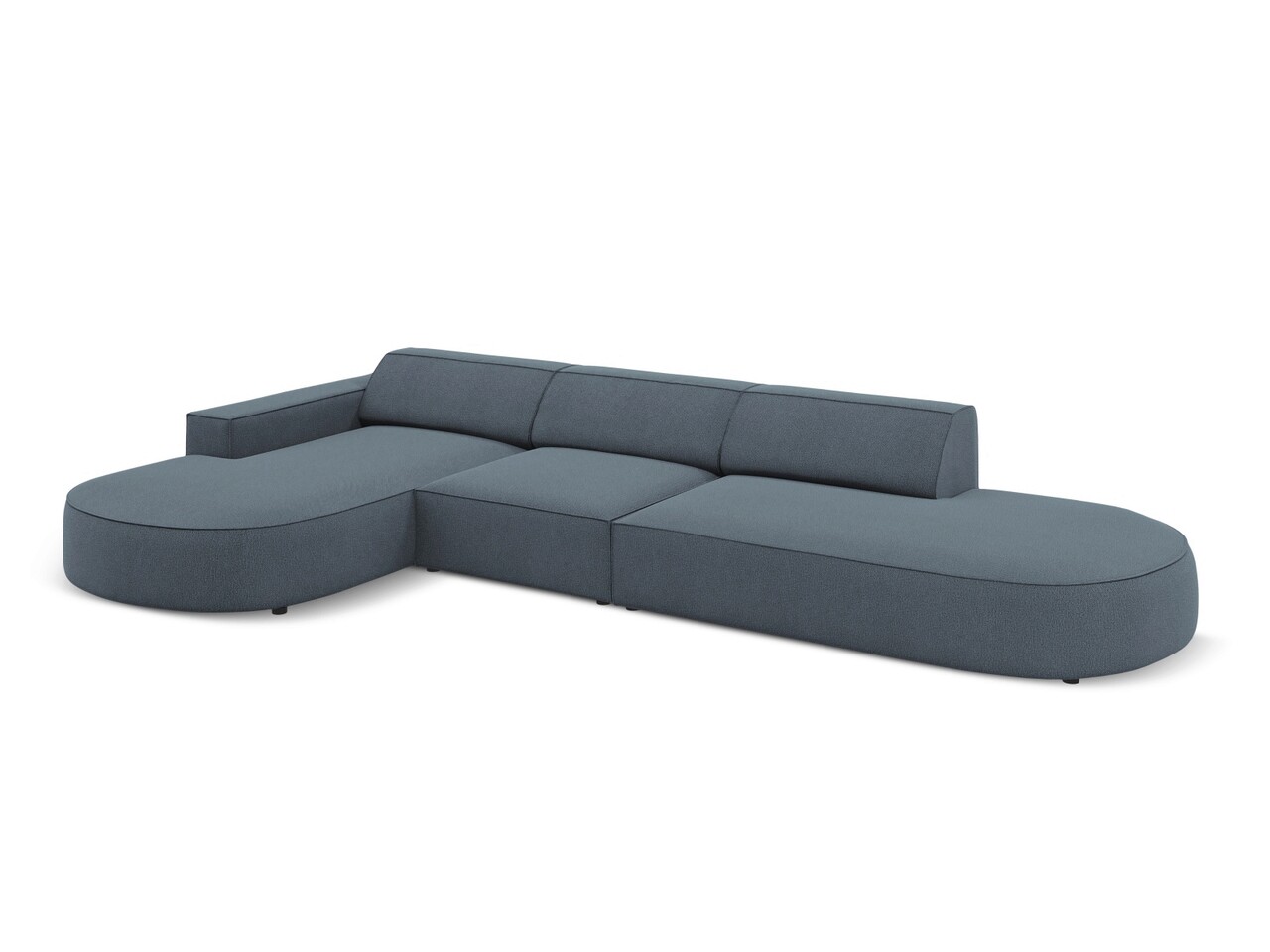 Coltar stanga 4 locuri, Jodie, Micadoni Home, BL, forma rotunjita, 342x166x70 cm, poliester, albastru